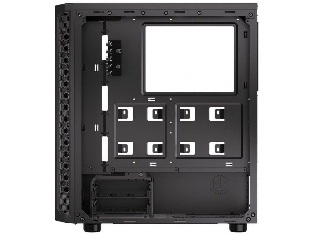 Endorfy Signum 300 CoreSkříň formátu Middle Tower s průhlednou bočnicí z tvrzeného skla nabízí dvě 2,5" pozice pro SSD disky a dvě 3,5" pozice pro pevné disky. Na horní části se nachází dva USB 3.0 porty, sluchátkový výstup a audio vstup pro mikrofon. Vybavena je dvěma 120 mm ventilátory, které spolu s perforovaným čelním panelem zajišťují dostatečné proudění vzduchu. Důmyslné řešení umožňuje pohodlné umístění až 360 mm dlouhého výměníku vodního chlazení na přední straně. Ve skříni je dostatek prostoru pro chladič CPU do výšky až 161 mm a grafickou kartu o délce až 325 mm. Dodávána je bez zdroje. Součástí je také sada prachových filtrů.