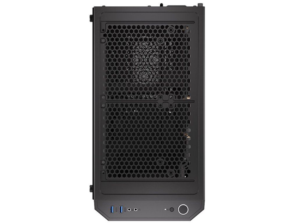 Konektory na horním panelu: 2× USB 3.0, 1× sluchátkový výstup, 1× vstup pro mikrofon