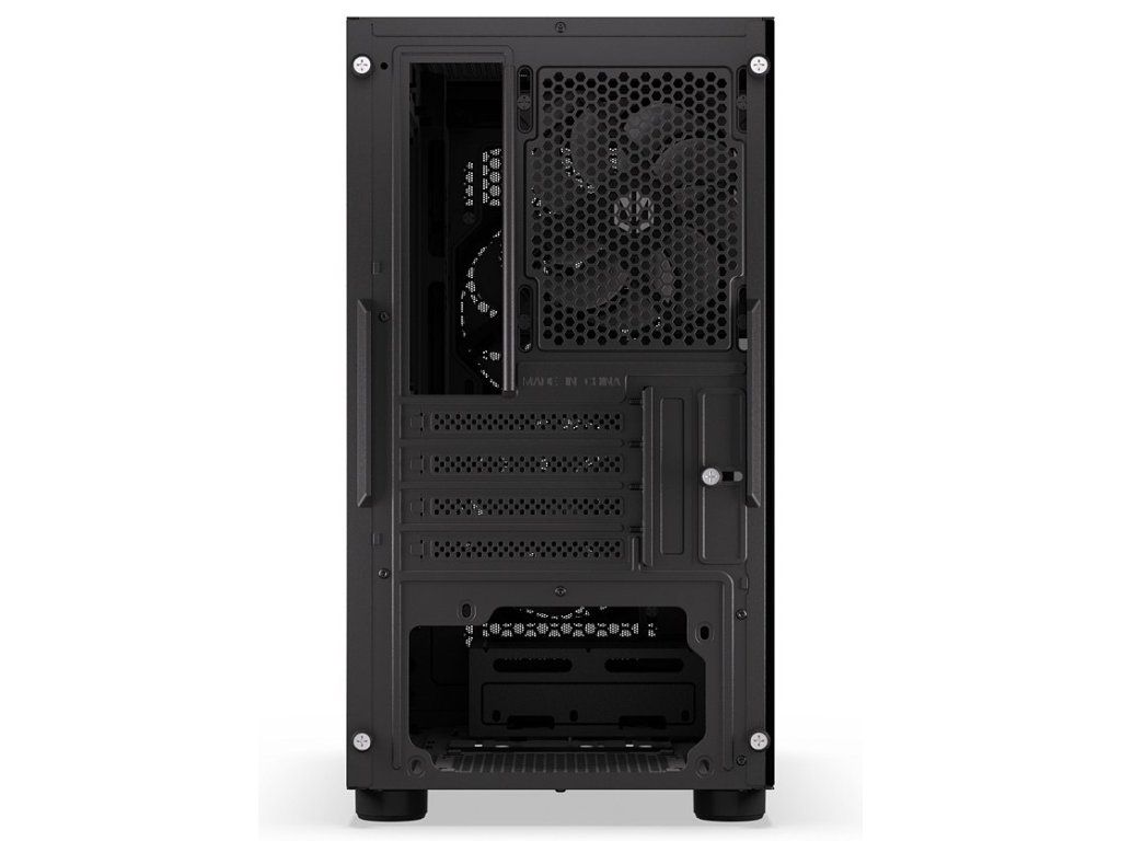 Skříň nabízí čtyři pozice pro úložná zařízení – dva 3,5" sloty pro pevné disky a dva 2,5" sloty pro SSD disky. K dispozici jsou také čtyři expanzní sloty se šroubovacími kryty pro snadnou instalaci rozšiřujících karet.
