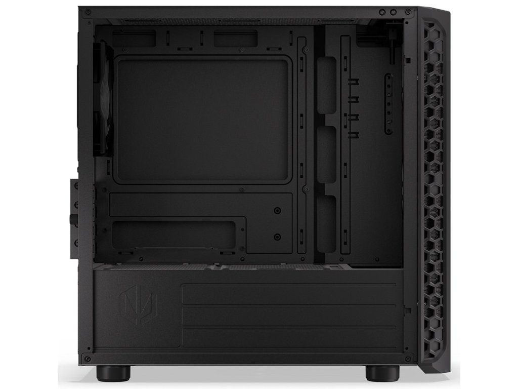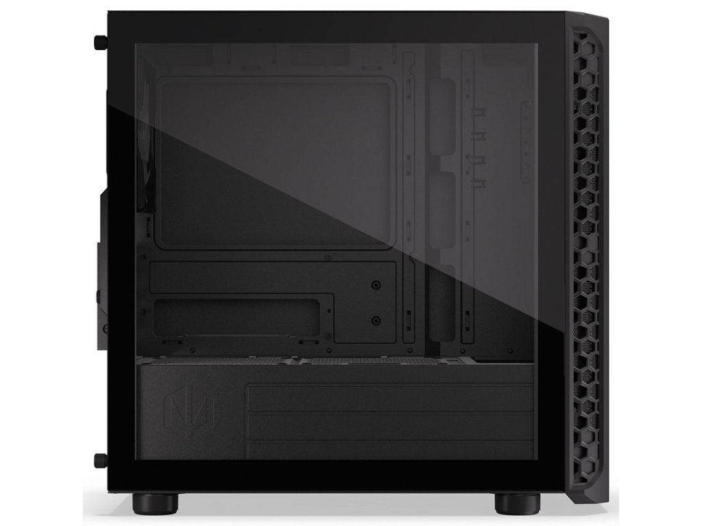 - Prosklená boční stěna z tvrzeného skla pro prezentaci komponent s prostorem za základní deskou pro úhledné vedení kabelů