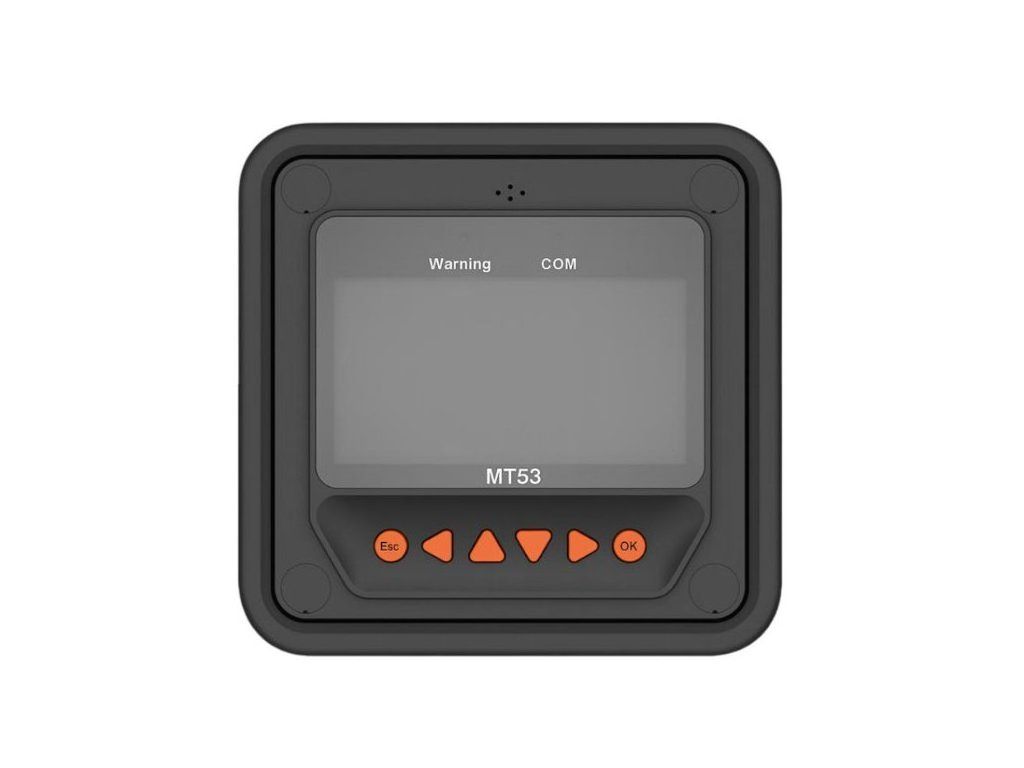 Externí LCD displej MT53 je navržen pro sledování a nastavování solárních regulátorů nabíjení s podporou RS-485 komunikace, včetně nejnovějších modelů řady IT/ET-NC G3. Displej se připojuje jednoduše přes RJ-45 port a je napájen přímo z regulátoru, což eliminuje potřebu samostatného napájení a zjednodušuje instalaci.