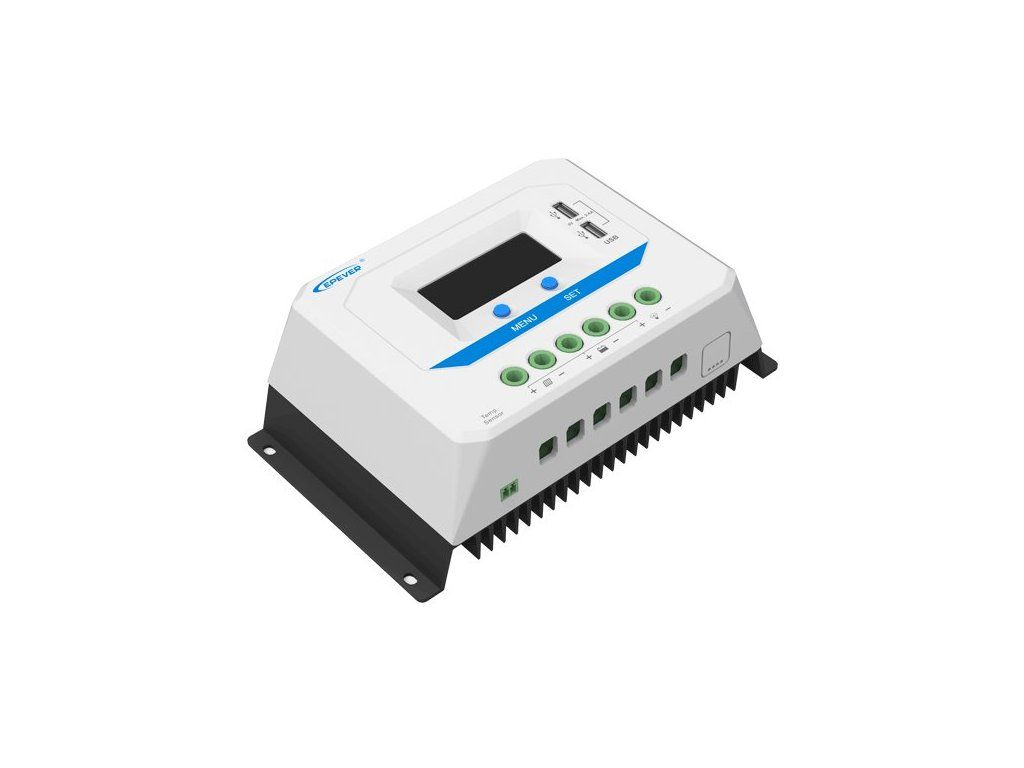 EPEVER VS3024AUPWM solární regulátor. Svou konstrukcí je určen pro malé ostrovní solární systémy se solárními panely 12 V (max. 400 Wp) pro dobíjení 12 V baterie, nebo solárními panely 24 V (max. 800 Wp) pro dobíjení 24 V baterie a maximálním nabíjecím proudem do 30 A. Výhodou je velmi jednoduchá a nenáročná instalace a spolehlivý provoz.