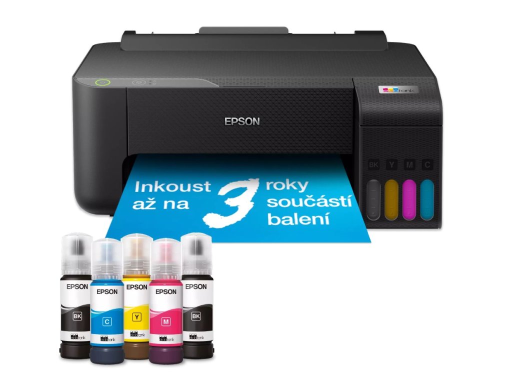 Epson EcoTank L1230Barevná inkoustová tiskárna formátu A4. Rozlišení tisku je až 5760 × 1440 DPI a rychlost tisku činí 5 stran barevně a 10 stran černobíle za minutu. Potěší také zásobník na papír s kapacitou 100 listů. Umístění nádržek na inkoust v přední části tiskárny umožňuje snadný přístup při doplňování inkoustu i přehled o jeho stávající hladině. Přináší také vylepšený systém doplňování inkoustu, který je navržen tak, aby ve všech fázích minimalizoval riziko rozlití inkoustu. Tiskárnu je možné připojit drátově přes USB.