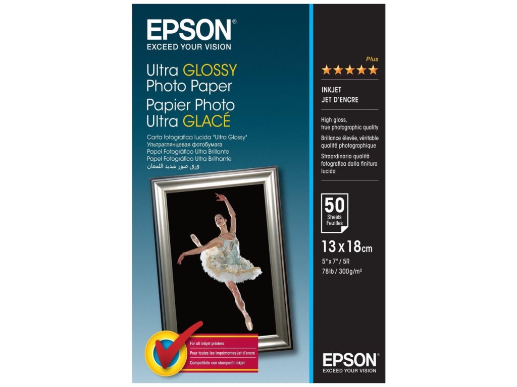 Epson Ultra Glossy 13x 18 cm 50 ksExtra lesklý fotopapír formátu 13x 18 cm určený pro co nejlepší fotografie. V balení se nachází 50 listů papíru.