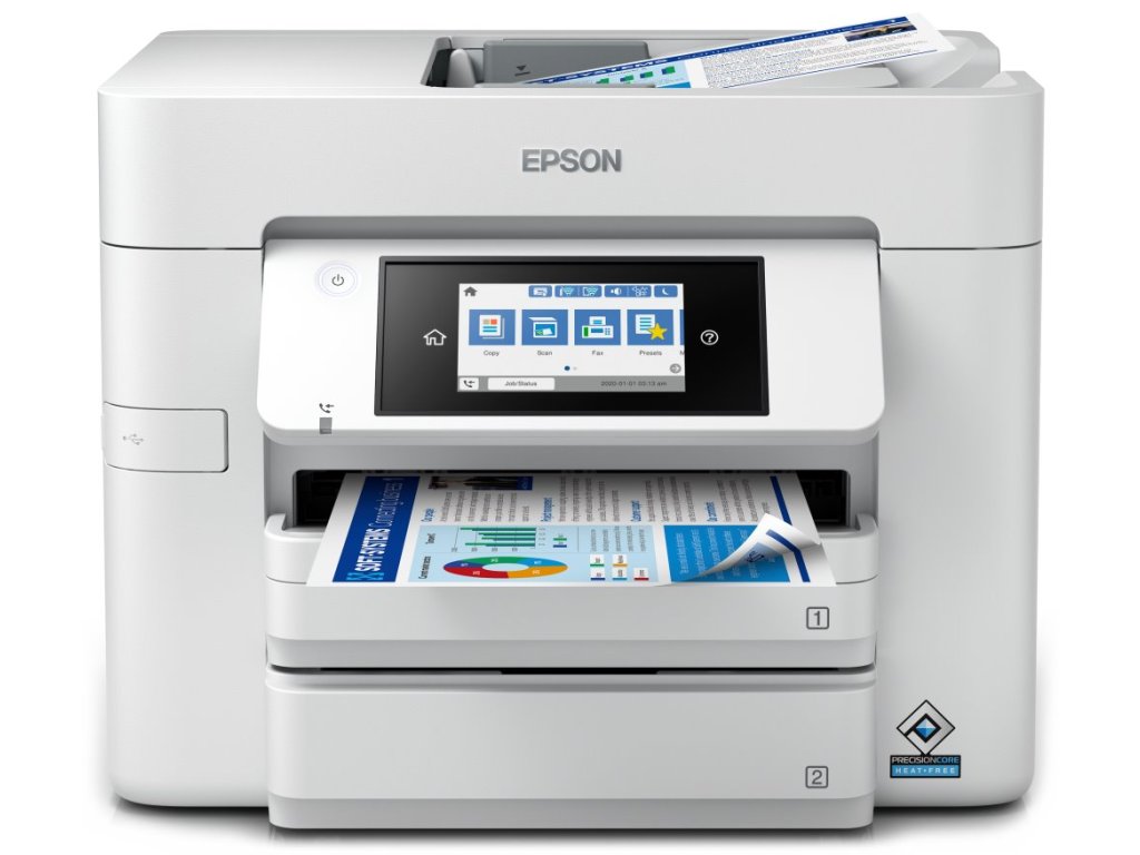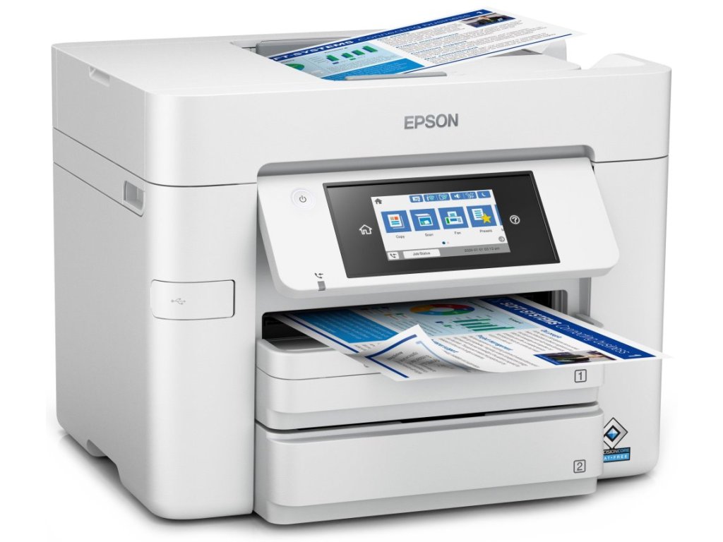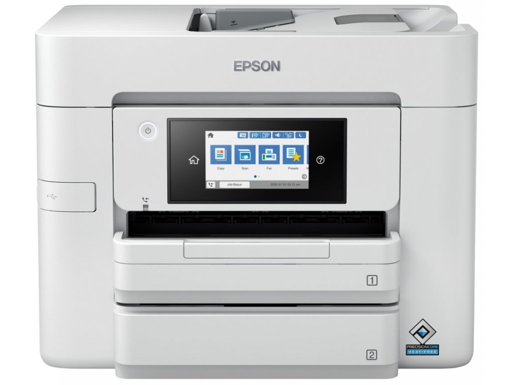 Epson WorkForce Pro WF-C4810DTWFMultifunkční barevná inkoustová tiskárna formátu A4 nabízející funkce tisku, skeneru, kopírky a faxu. Rozlišení tisku je až 4800 x 2400 dpi, rozlišení skeneru až 1200 x 1200 dpi a rychlost tisku až 36 stran za minutu černobíle a 22 stran za minutu barevně. Potěší také automatický oboustranný tisk, dva zásobníky na papír s celkovou kapacitou 500 listů či automatický podavač dokumentů s kapacitou 50 listů. Tiskárna také nabízí snadné přímé ovládání prostřednictvím čelního panelu s dotykovým LCD displejem o úhlopříčce 4,29". Připojení lze jednoduše realizovat jak drátově skrze USB či síťový Ethernet port, tak bezdrátově pomocí technologie Wi-Fi. Pro rychlý tisk je přítomen USB host port. Samozřejmostí je pak možnost bezdrátového tisku z mobilních zařízení prostřednictvím Apple AirPrint či Epson Connect.