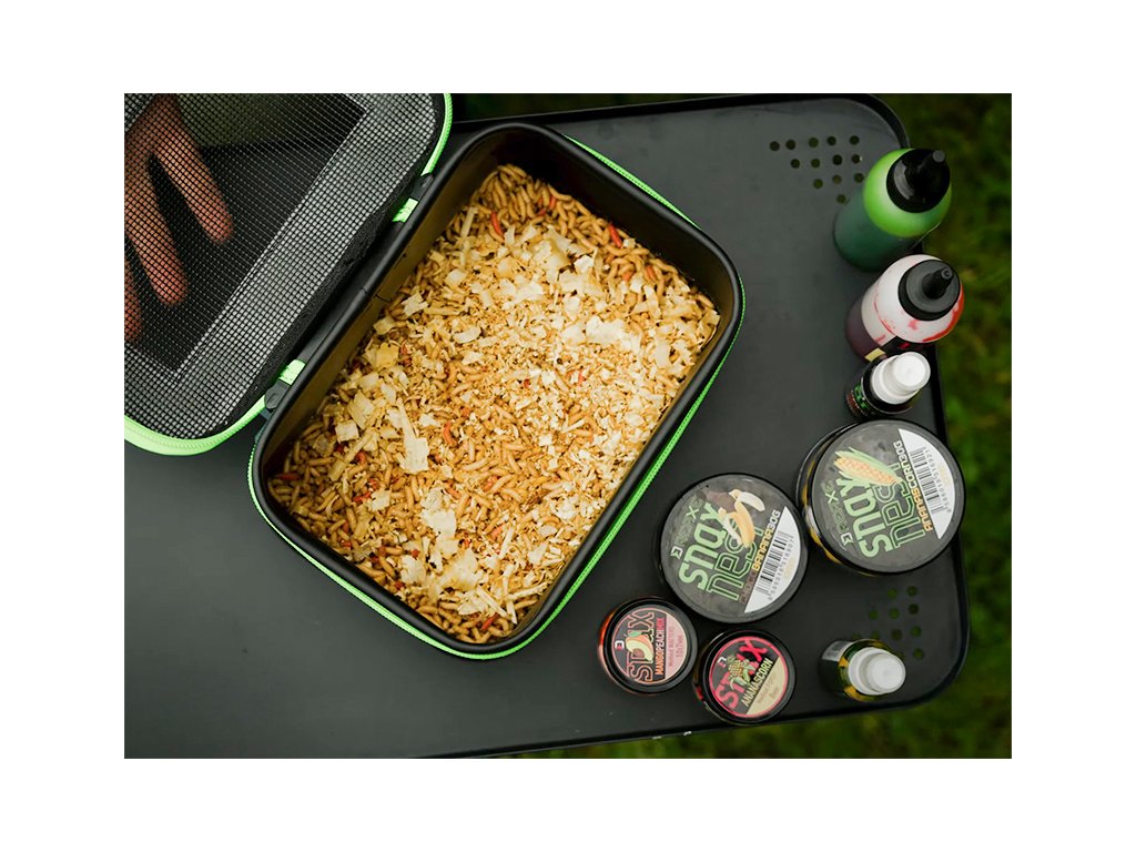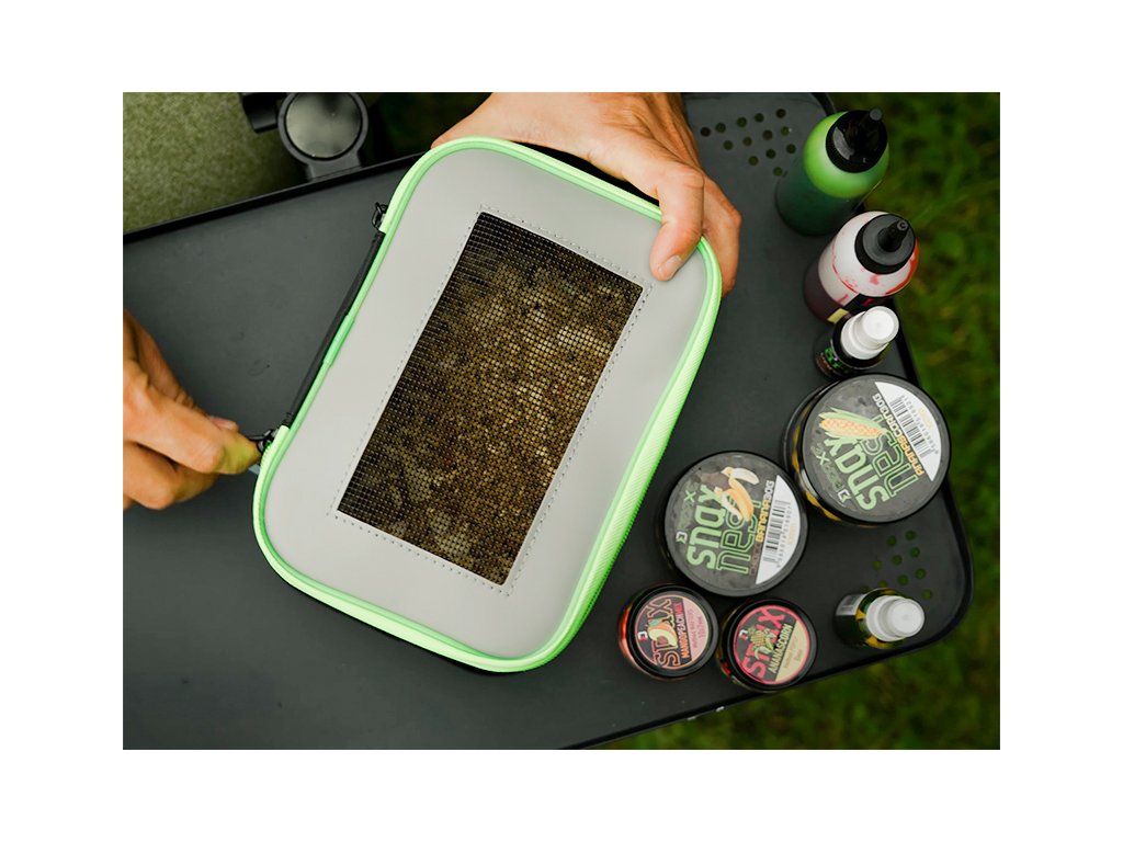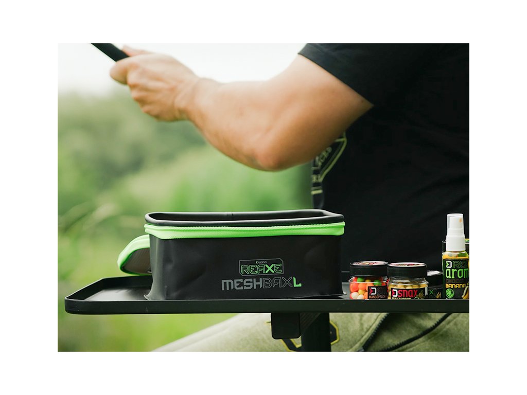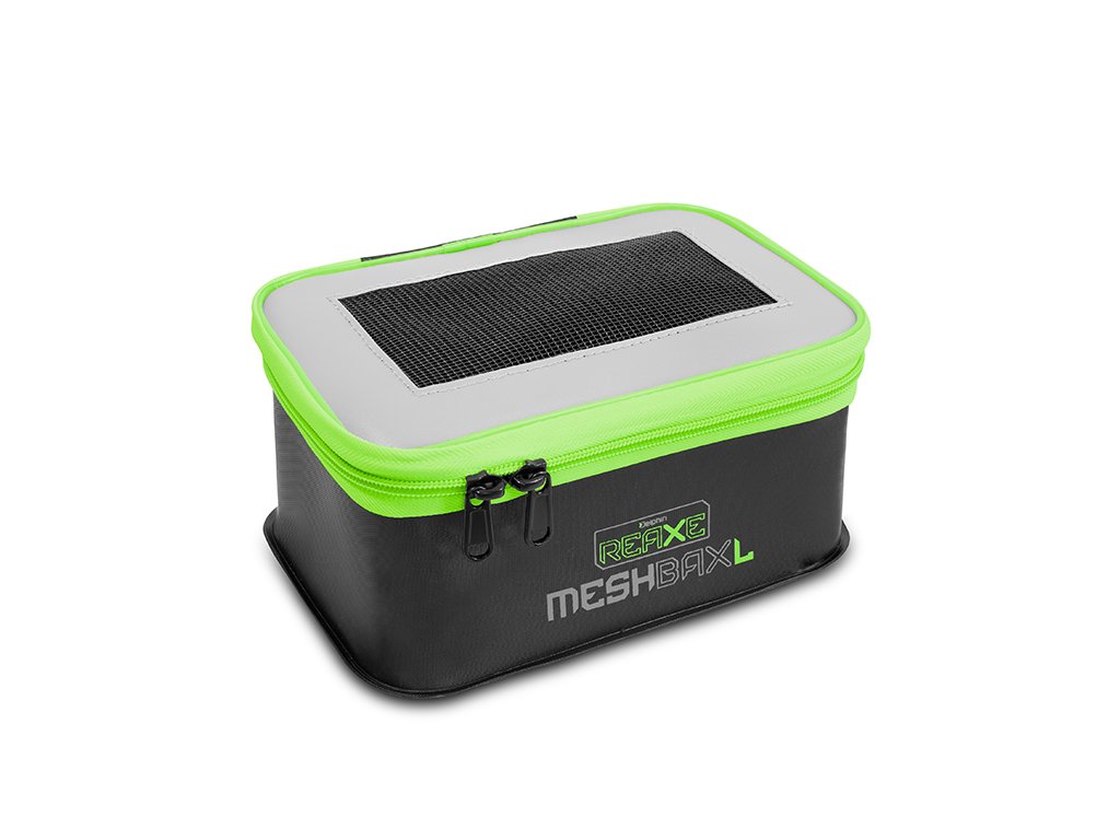 Praktická taška určená primárně pro kostní červy a jiné druhy živých návnad. Víko je tvořeno perforovanou černou síťkou, která zajistí červům dostatek vzduchu, zabrání přehřívání a tím udrží vaši návnadu déle živou a čerstvou. Taštička je černé barvy s šedým víkem, výrazným - dobře viditelným zipem, který ji dokonale uzavře a tím zamezí nechtěnému úniku červů. MeshBAX lze využít také jako univerzální tašku pro různé drobnější rybářské příslušenství či nástrahy, dipy a jiné komponenty. Produkt je vyroben z materiálu EVA, který je snadno omyvatelný a odolný vůči vodě i mechanickému poškození. Technické parametry: Rozměry: 22x15x10cmDoplňkové parametry