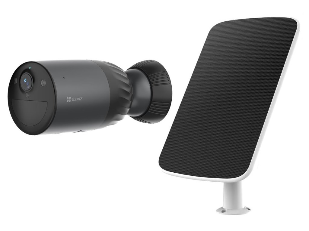 EZVIZ BC1C 4K + solární panelVenkovní bezdrátová IP kamera s PIR čidlem pro detekci pohybu nabízí snímač 1/2,7" CMOS s rozlišením 8 Mpx, který je schopný snímat video v rozlišení 3840 × 2160 při 15 fps. Pro případ zhoršených světelných podmínek je přítomen IR přísvit do vzdálenosti 15 m a bílý LED přísvit pro pořizování barevných záznamů v noci. Komprese H.265/H.264 snižuje nároky na přenos dat a úložiště. Natočené záznamy je možné ukládat na microSD kartu do kapacity až 512 GB, nebo odesílat na cloudové úložiště (na základě předplatného). Součástí kamery je integrovaný reproduktor a mikrofon, který umožní kvalitní oboustrannou komunikaci. Aktivní zastrašení v podobě stroboskopického světla a zvukového alarmu pak varuje případné narušitele. Propojení kamery pomocí aplikace v mobilním zařízení umožní pohodlný vzdálený přístup, pořizování záznamů či fotografií nebo upozornění v případě detekce pohybu. Mezi další užitečné funkce patří například rozpoznávání lidské postavy a vozidla pomocí umělé inteligence či kompatibilita s hlasovými asistenty Google Assistant a Amazon Alexa. Samozřejmostí je voděodolný kryt dle IP65. Připojení je realizováno bezdrátově pomocí Wi-Fi. Napájení zajišťuje dobíjecí baterie s kapacitou 10 400 mAh s výdrží až 180 dní na jedno nabití. Baterii lze nabíjet pomocí solárního panelu EZVIZ (součástí balení).