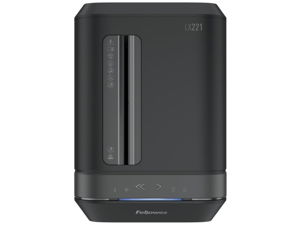 Fellowes LX 221Skartovačka s křížovým řezem. Dokáže pojmout až 20 listů papíru A4 najednou. Poradí si také s ničením platebních karet, malých sponek a svorek v dokumentech. Technologie SafeSense automaticky zastaví skartovací stroj při dotyku rukou v oblasti vstupního otvoru. Díky funkci Sleep Mode se zařízení po 2 minutách nečinnosti automaticky vypne. Výsuvný přední koš s velkým průzorem umožňuje vizuálně kontrolovat míru zaplnění.