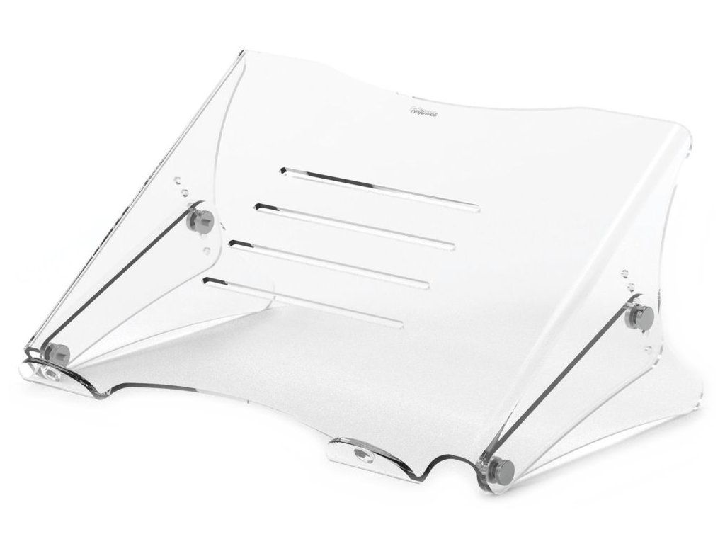 Fellowes stojan na notebook ClarityPodstavec pro notebooky s úhlopříčkou až 15" umožňuje nastavení úhlu sklonu a výšky v šesti stupních. Podstavec tak pomáhá redukovat napětí zad a udržovat správné držení těla. Průduchy v podstavci zajistí dostatečné proudění vzduchu a zabrání tak přehřívání notebooku. Díky minimalistickému designu se hodí do každé kanceláře.