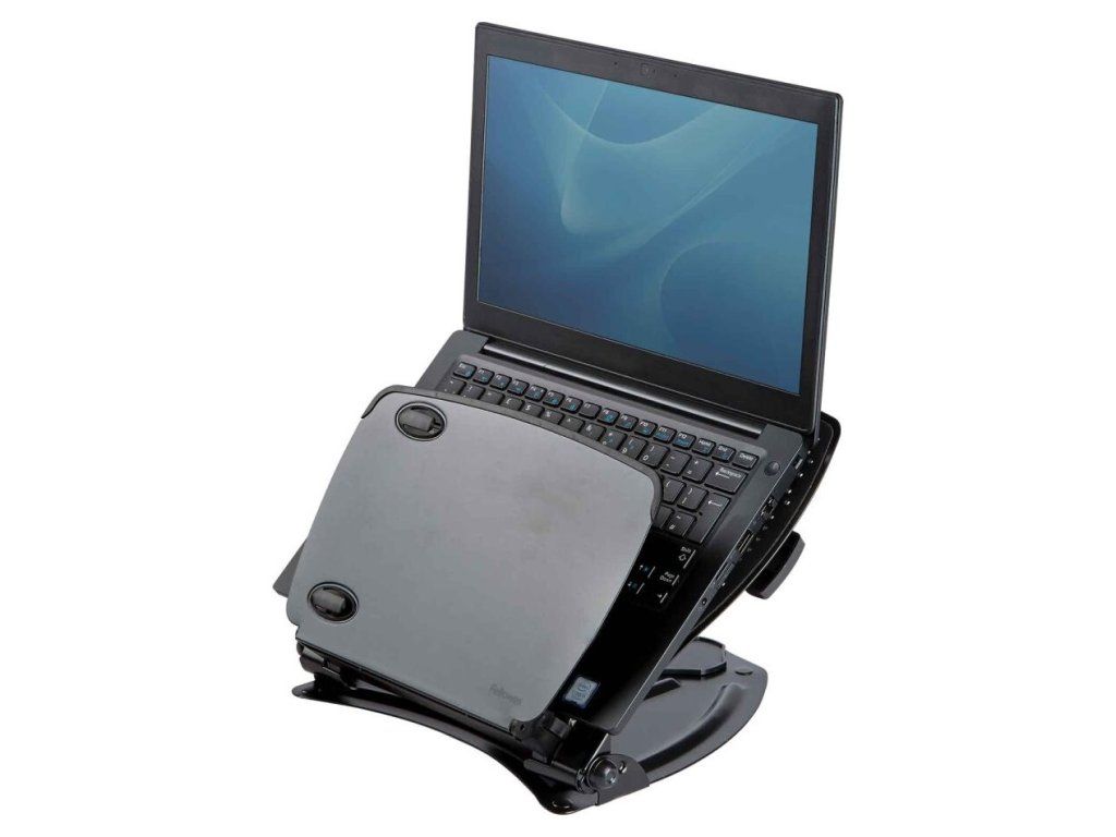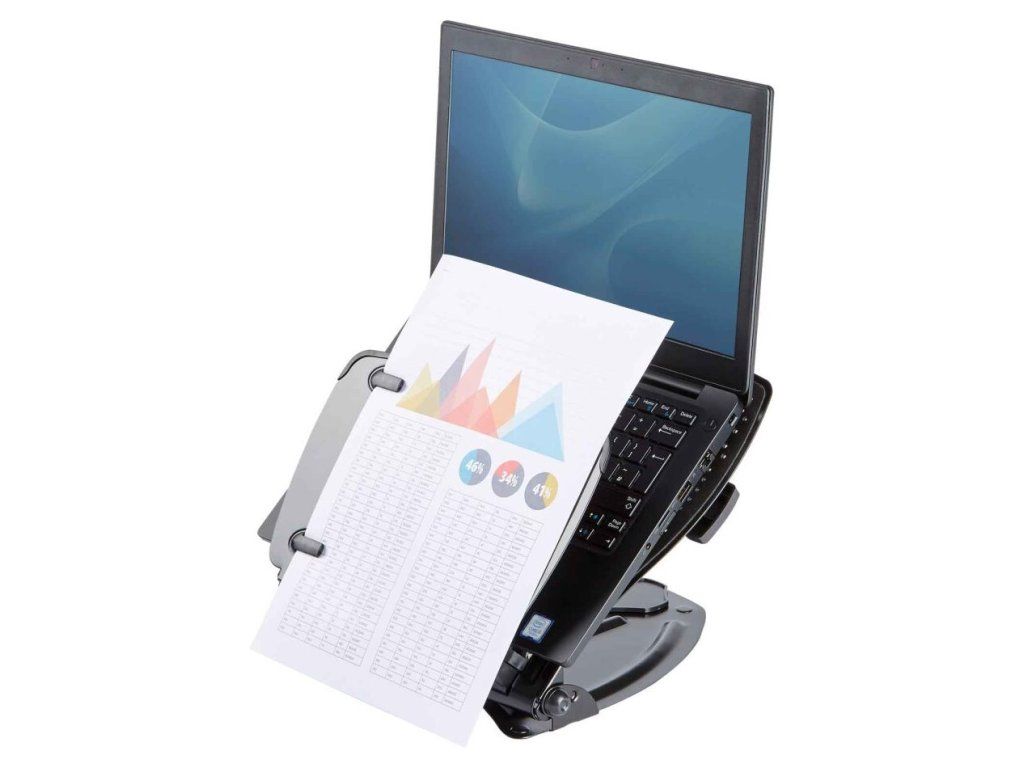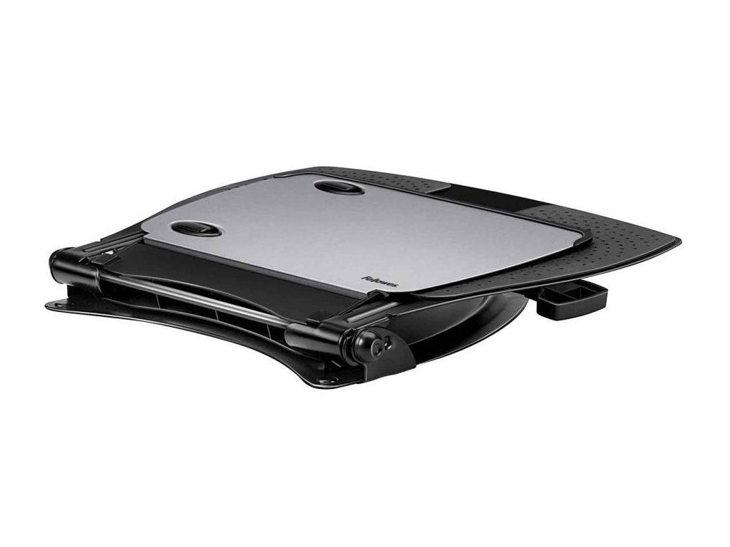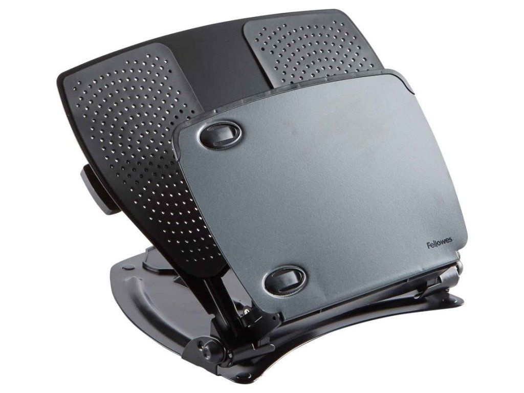 Fellowes ProfessionalPodstavec pro notebook umožňuje nastavení úhlu a výšky v 10 různých úrovních. Pomáhá tak redukovat napětí zad a udržovat správné držení těla. Podstavec disponuje integrovaným hubem se čtyřmi USB 2.0 porty a k dispozici je také praktický držák na dokumenty.