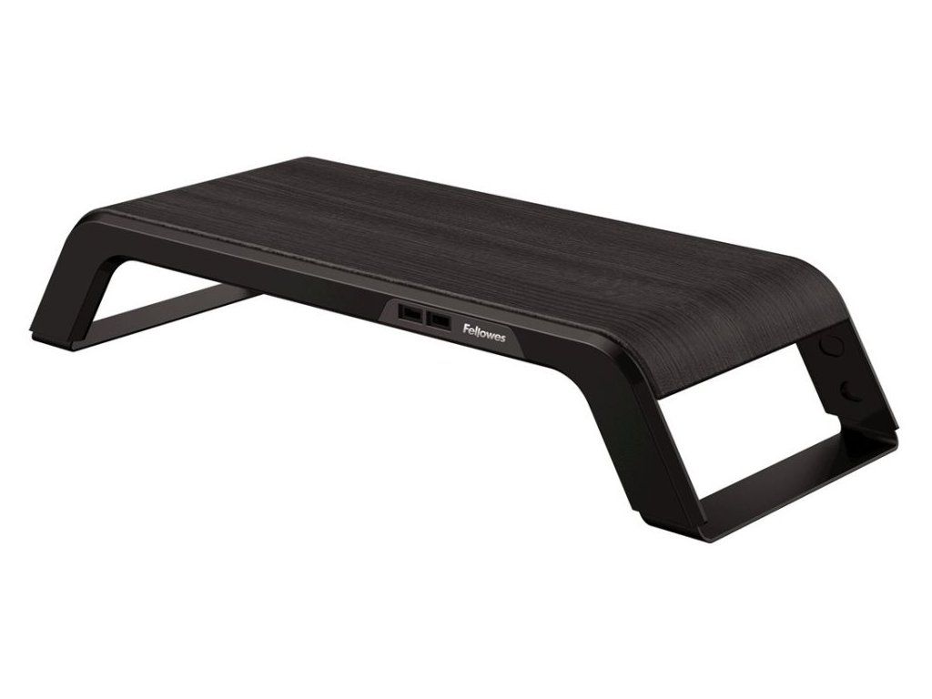 Fellowes stojan pod monitor HANAPraktický podstavec pro monitor zvedá obrazovku na úroveň očí, čímž zmírňuje svalové napětí ramen a šíje. Výšku lze snadno nastavit ve třech úrovních. K dispozici je také integrovaný hub se dvěma USB 2.0 porty a dvěma nabíjecími USB porty.