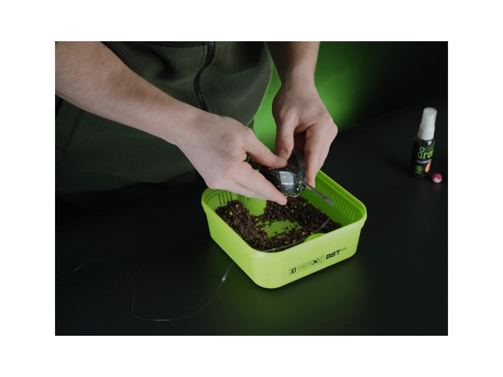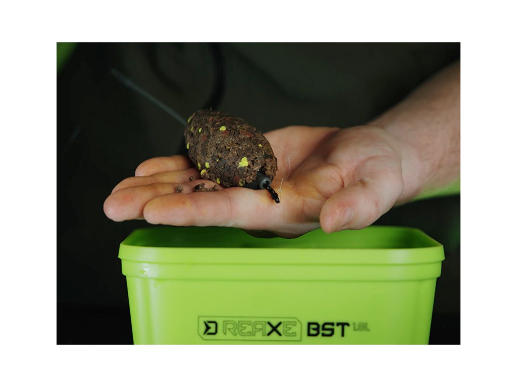 Forma Method QUIX REAXE XL představuje nezbytný doplněk vaší feederové výbavy, který umožňuje rovnoměrné naplnění method feederového krmítka. Tím dosáhnete efektivního rozpadu krmné směsi a tu nejatraktivnější prezentaci vaší nástrahy na dně. Hlavní předností formy je její ergonomický tvar a samotné vlastnosti použitého materiálu. Jedinečný tvar formy byl kompletně navržen designovým týmem značky Delphin. Průsvitnost materiálu zaručuje výbornou viditelnost nástrahy i přes gumovou stěnu, díky čemuž můžete dokonale přizpůsobit její polohu v krmítku. Extra měkkost materiálu umožňuje kontrolovat tlak vynaložený na obsah uvnitř, a tím dosáhnout co možná nejlepšího rozpadu krmení ve vodě. Tvar formy je uzpůsoben pro rychlou manipulaci a co nejjednodušší odnětí z krmítka. K hladké manipulaci přispívají dva výrazné boční výstupky a speciálně profilovaná spodní strana s drážkami a logem Delphin. Tyto prvky přesně znázorňují ideální místo stlačení, čímž se předchází nechtěnému rozpadu krmné směsi při vyklápění. Celkový tvar a velikost formy jsou navrženy tak, aby bezvadně pasovaly na model krmítka Delphin Method QUIX XL, ale díky univerzálnímu provedení ji bez problémů využijete i při ostatních běžně dostupných method feederových krmítkách v dané velikosti. PROTECTED DESIGN Tento produkt byl kompletně navržen designéry značky Delphin. Jeho design a technické řešení jsou natolik unikátní, že je registrován a chráněn na území celé Evropské unie.Doplňkové parametry