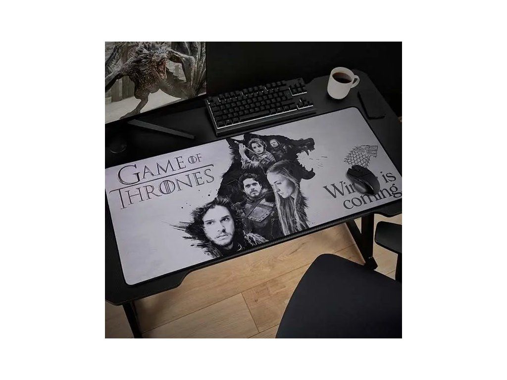 Game of Thrones XXL podložkaVelká podložka pod myš a klávesnici pro fanoušky populárního seriálu Game of Thrones. Vysoce kvalitní tisk odolný proti vodě zaručuje dlouhou životnost a ochranu proti skvrnám a opotřebení. S přilnavým gumovým podkladem je podložka bezpečně přichycena ke stolu, kde zůstává za všech okolností.