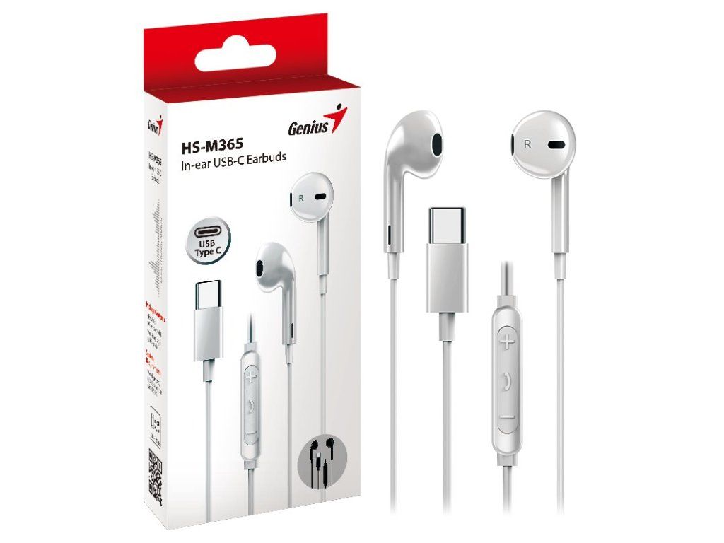 Genius HS-M365Lehký headset do uší se skvělým zvukem. Disponuje ovládáním hlasitosti přímo na kabelu a vestavěným mikrofonem. Připojení je realizováno skrze USB-C konektor.