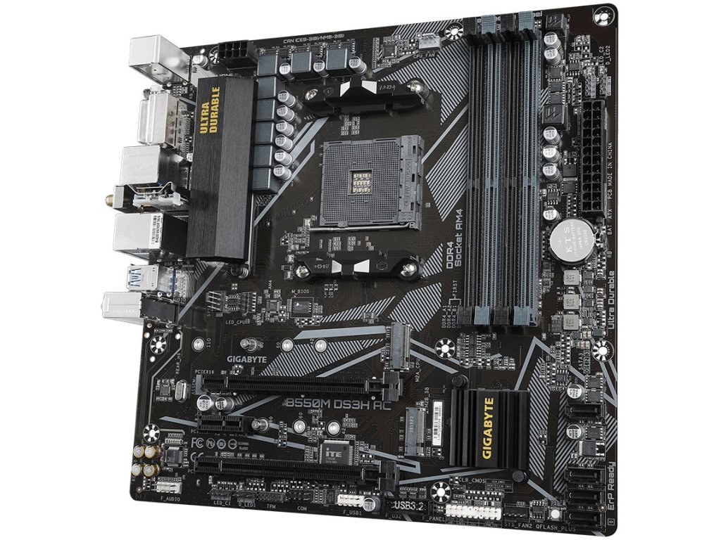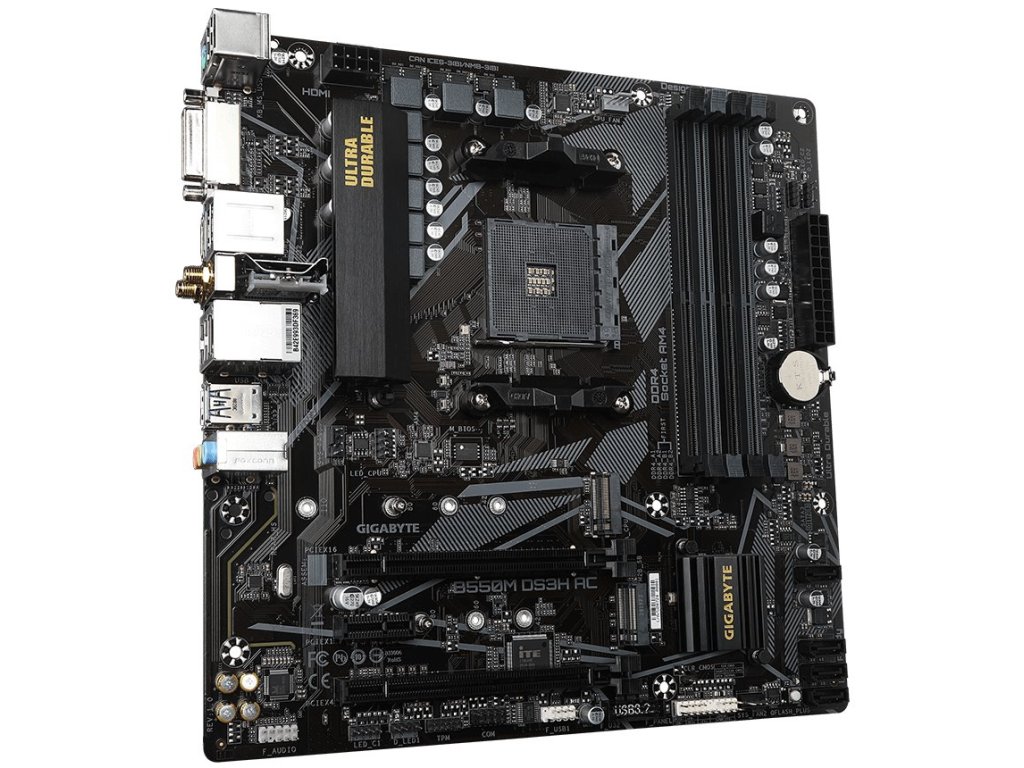 GIGABYTE B550M DS3H AC / AMD B550 / AM4 / 4x DDR4 / 2x M.2 / DVI-D / HDMI / WiFi / mATX