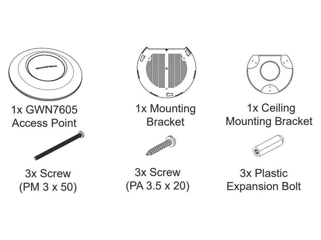 Grandstream GWN7605Stropní/nástěnný Wi-Fi 802.11ac Wave-2 přístupový bod (2,4 & 5 GHz) určený pro malé a střední bezdrátové sítě. Nabízí dva GbE porty (10/100/1000 Base-T) a dvoupásmovou technologii 2x2:2 MU-MIMO s technologií formování paprsku (beam-forming). Pro zajištění snadné instalace a správy je podporován GWN.Cloud - bezplatná cloudová platforma společnosti Grandstream. Zařízení GWN7605 je ideálním Wi-Fi přístupovým bodem pro nasazení Voice-over-Wi-Fi řešení a nabízí bezproblémové připojení k hlasovým a video IP telefonům Grandstream. Díky podpoře QoS, aplikací s nízkou latencí, Mesh sítí a kaptivních portálů představuje škálovatelné Wi-Fi řešení pro nasazení v maloobchodech apod.