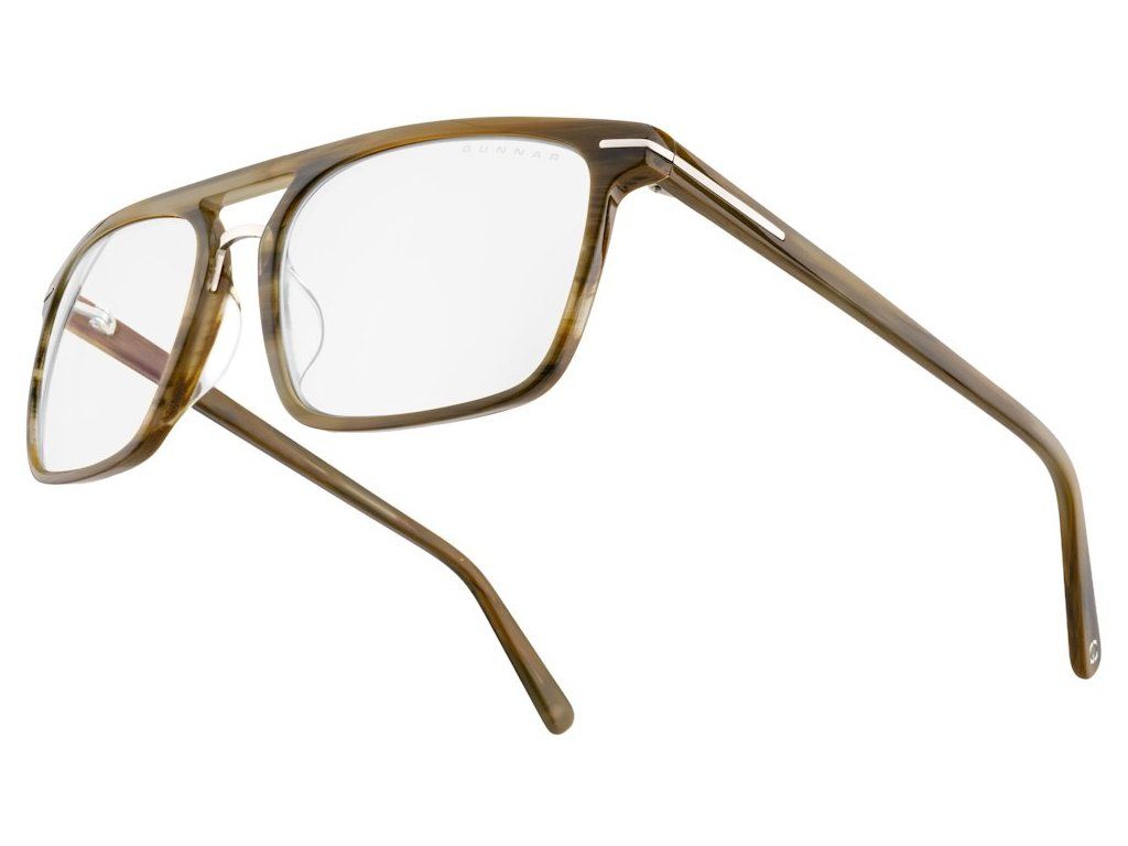 Brýle jsou vybaveny sedlovým mostem pro maximální pohodlí a minimalistickým kovovým prvkem, který elegantně propojuje přední část s nožičkami a zdůrazňuje nadčasový charakter designu. Patentovaná technologie čoček GUNNAR v kombinaci s povrchem G-Shield® Premium zajišťuje antireflexní vlastnosti a odolnost proti otiskům.