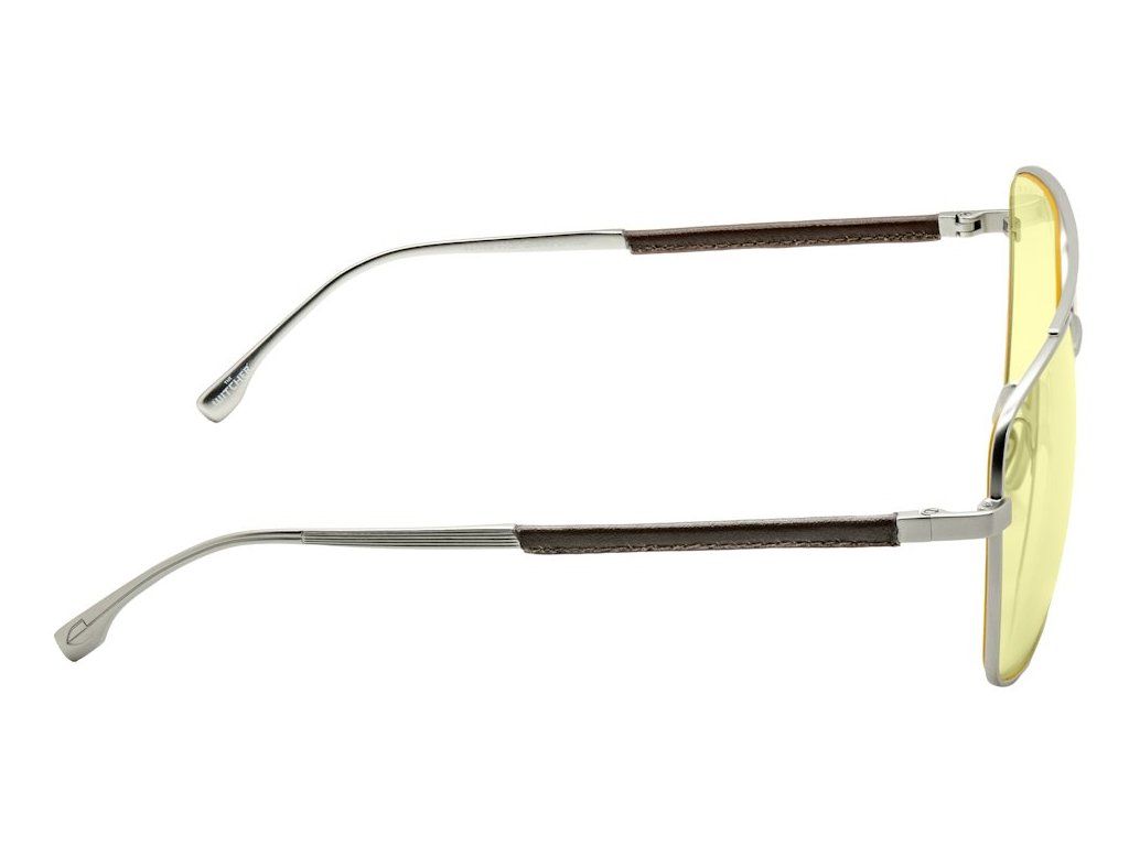 - Aviátorský rám z broušené nerezové oceli s koženými obrážkami