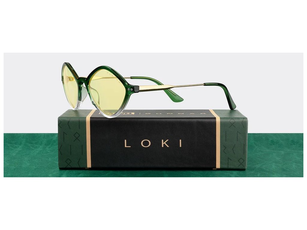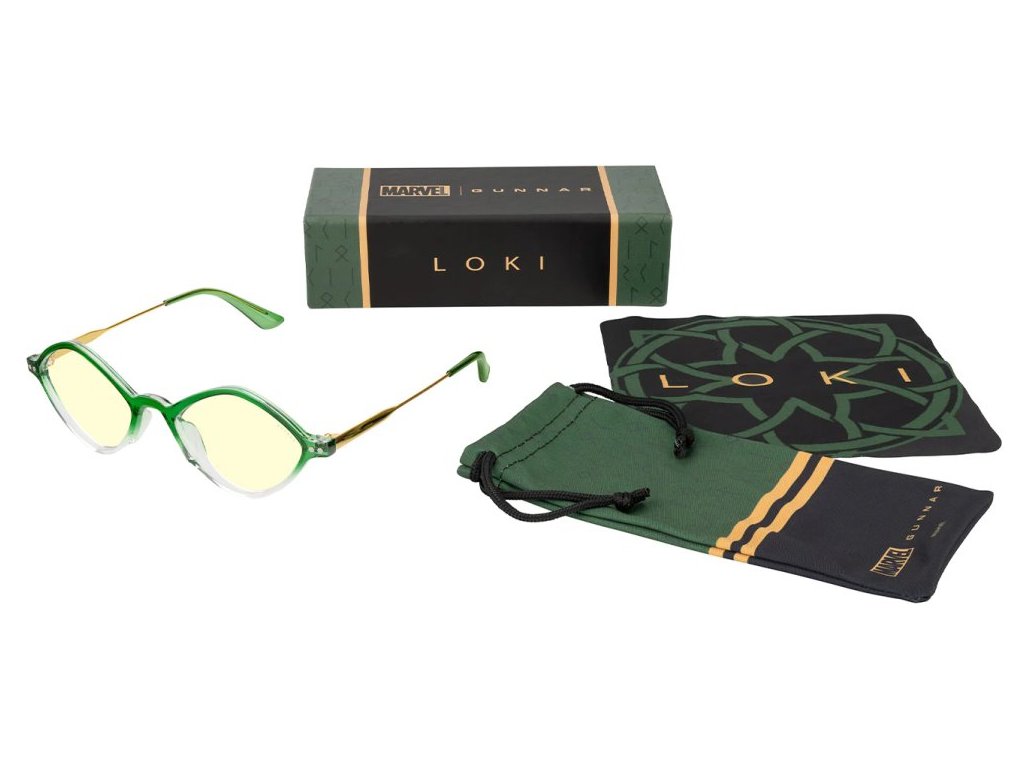 GUNNAR kancelářské/herní brýle LOKI ASGARD EDITION - MARVEL EMERALD-GOLD * jantarová skla * BLF 65 * GUNNAR focus