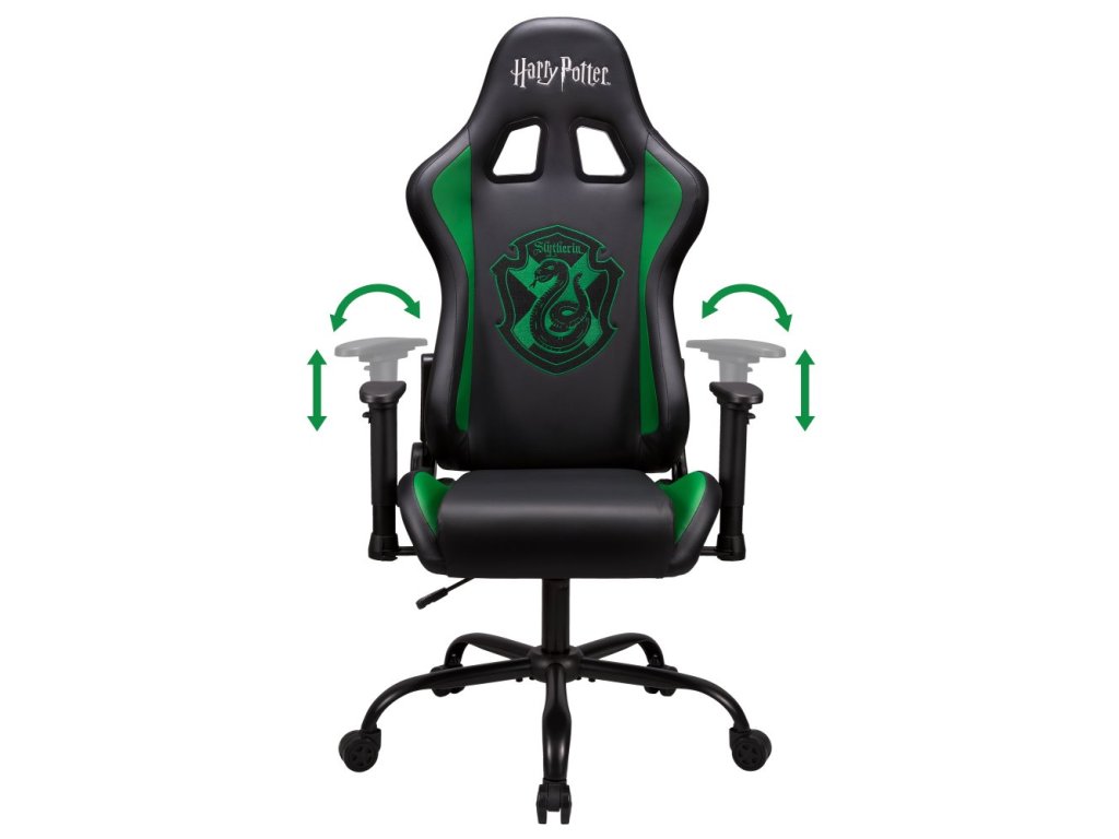 Harry Potter Slytherin Gaming Seat ProStylová herní židle pro fanoušky série Harry Potter poskytuje dokonalou oporu a pohodlí i při dlouhém sezení u počítače. Je vyrobena z kvalitní syntetické kůže, která je příjemná na dotek, a navíc se snadno čistí. Židle disponuje úhlem sklonu až 135° a má výškově nastavitelné opěrky rukou s rotací. Pro celkové nastavení výšky židle je k dispozici plynový píst třídy 3, který vyniká dlouhou trvanlivostí. Nosnost židle je až 125 kg.