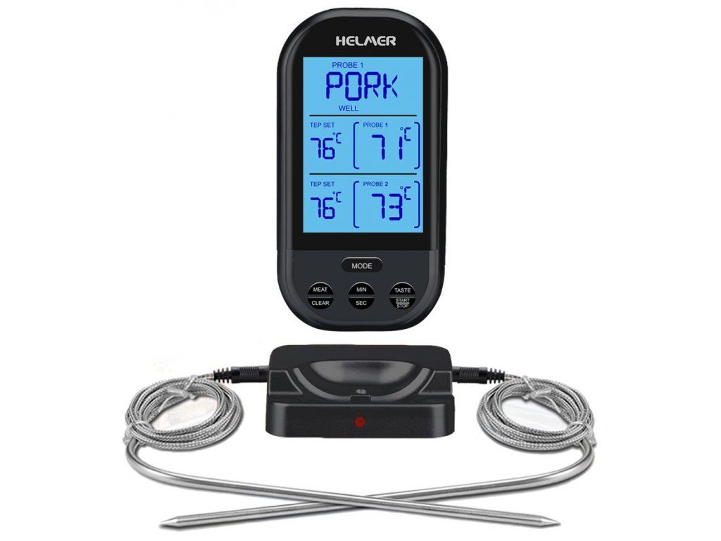 HELMER bezdrátový kuchyňský teploměr se dvěma sondami TM 24/ LCD displej/ 0 až 250 °C/ černý