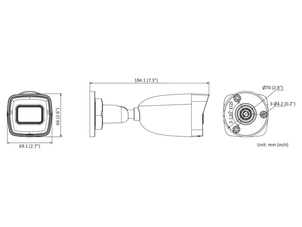 Objektiv: f = 2,8 mm, pevný, úhel záběru horizontálně 113°, vertikálně 62°, diagonálně 134°