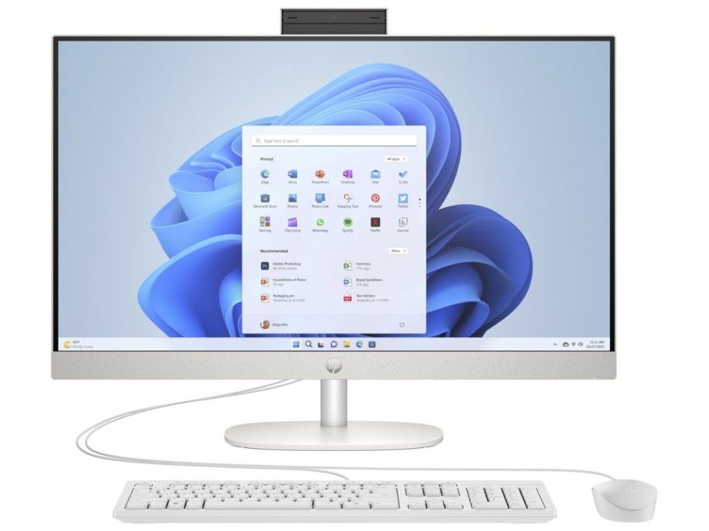 HP 27-cr0001ncStolní počítač s monitorem v jednom. Základem počítače je čtyřjádrový procesor AMD Ryzen 5 7520U pracující na frekvenci 2,8 GHz, doplněný 16 GB operační paměti. Vybaven je 27" displejem s Full HD rozlišením obrazu 1920 × 1080 bodů. Obrazová data má na starost integrovaná grafická karta AMD Radeon 610M. Pro data je k dispozici SSD disk s kapacitou 512 GB. Samozřejmostí je bezdrátová technologie Wi-Fi a Bluetooth. Dodáván je s operačním systémem Windows 11 Home. Součástí balení je klávesnice a myš.