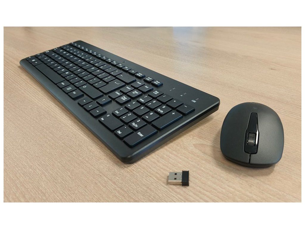 Klávesnice nabízí elegantní design s tichými klávesami typu chiclet. Optická myš se symetrickou ergonomií nabízí rozlišení snímače 1600 dpi. Připojení lze realizovat skrze USB adaptér a technologii 2,4 GHz. Napájení zajišťují AAA baterie, které jsou součástí balení.