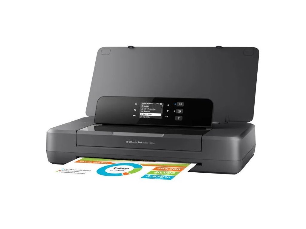 HP Officejet 200Mobilní tiskárna nabízí malé a kompaktní rozměry, nízkou hmotnost, rozlišení tisku 1200 x 1200 a rychlost tisku až 10 stran za minutu. Tiskárnu připojíte k počítači jak USB kabelem, tak pomocí bezdrátové WiFi sítě, abyste mohli tisknout z mobilních zařízení. Snadné ovládání umocňuje ovládací panel s 5 cm velkým displejem. K napájení lze využít zdroj nebo vestavěnou baterii.