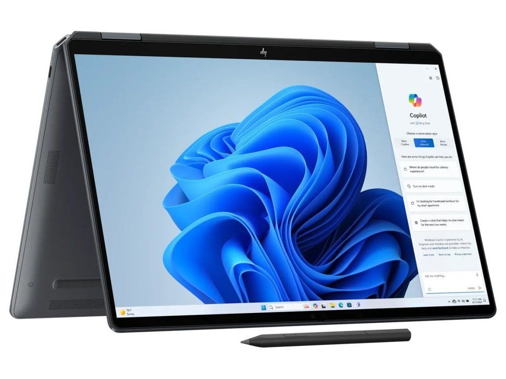Výbava: Wi-Fi, Bluetooth, dotykový displej, 9Mpx IR webkamera s podporou AI, čtečka otisku prstů, podsvícená klávesnice, DTS:X Ultra, Poly Studio, Thunderbolt 4, 100 % DCI-P3, Corning Gorilla Glass 5, haptický touchpad, akcelerometr, gyroskop, magnetometr, infračervený teplotní snímač, HP Stylus, Intel EVO, podpora Microsoft Copilot, HP Absolute (2 roky)