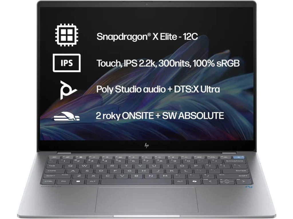 HP Omnibook X 14-fe1013nc/ SD-X1P-42-100/ 16GB DDR5/ 1TB SSD/ Qualcomm Adreno GPU/ 14"2,2K IPS,touch/ W11H/ stříbrný
