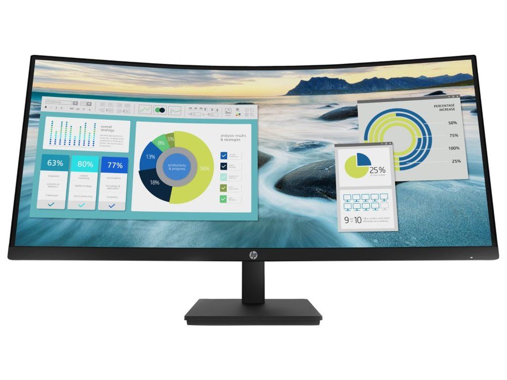 HP P34hcUltraširokoúhlý prohnutý LED monitor s úhlopříčkou 34" a rozlišením 3440 x 1440 obrazových bodů. Díky kontrastu 3500:1, odezvě 5 ms a obnovovací frekvenci 100 Hz poskytuje plynulý pohyb a ostrý obraz. Použitím technologie VA je dosaženo širokých pozorovacích úhlů 178° horizontálně i vertikálně. Monitor disponuje čtyřmi USB 3.0 porty pro připojení periferií. K dispozici je také port USB typu C, který kromě vysokorychlostního přenosu videa a dat, umožňuje napájení připojených zařízení do 65 W. Monitor je vybaven výškově nastavitelným stojanem a vestavěnými reproduktory.