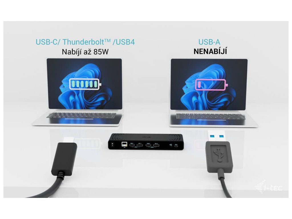 i-tec dokovací stanice Universal Dual 4K Display, Power Delivery 85W + i-tec USB-C nabíječka 100W