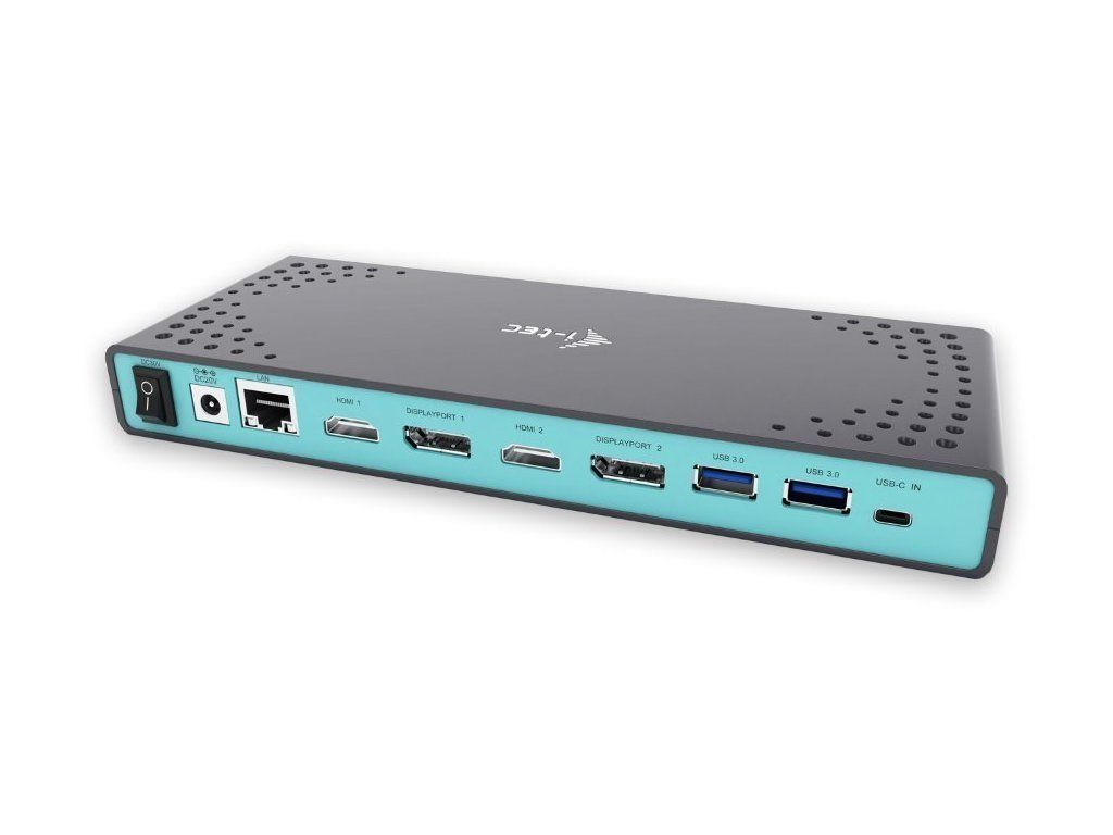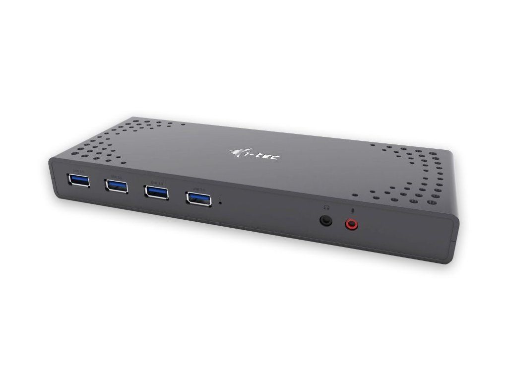 I-TEC USB-C 5KDokovací stanice je vybavena čtyřmi grafickými výstupy, díky kterým můžete využívat různé kombinace dvou displejů. Připojit můžete buď 2× HDMI nebo 2× Display Port nebo 1× HDMI a 1× Display Port, vždy s rozlišením až 4K 4096 × 2160 při 60 Hz. Při připojení jediného monitoru přes dva DisplayPort kabely dosáhnete rozlišení až 5K 5120 × 2880 při 60 Hz. Dokovací stanice dále nabízí audio vstup a výstup, RJ-45 port, šest USB 3.0 portů a zámek Kensington. Kromě toho se vyznačuje kompaktním a elegantním designem a pasivním systémem chlazení. Dokovací stanice se připojuje přes USB 3.0 rozhraní, a tudíž nepodporuje nabíjení notebooků a tabletů.