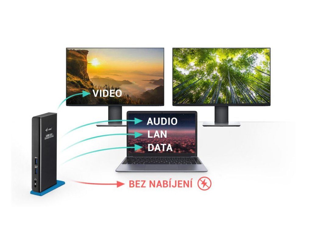 Replikátor portů se připojuje přes USB 3.0 rozhraní, a tudíž nepodporuje nabíjení notebooků a tabletů.