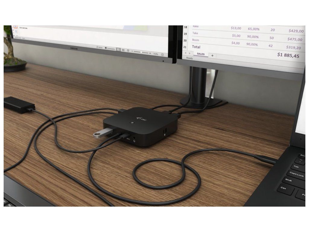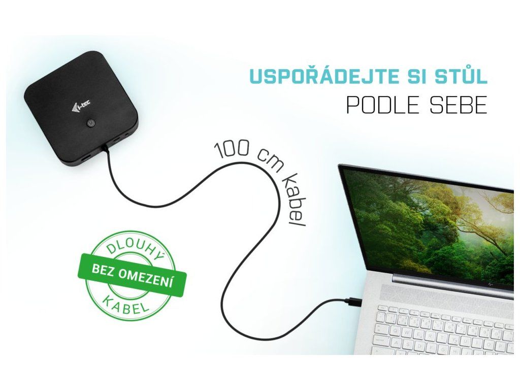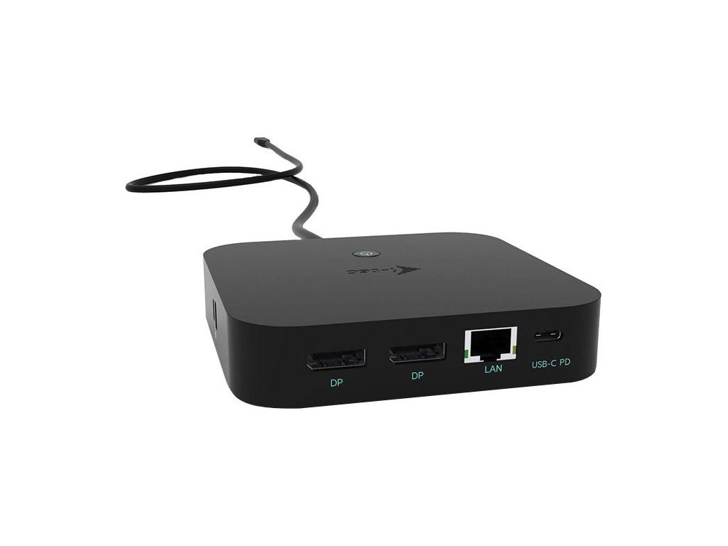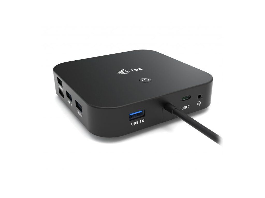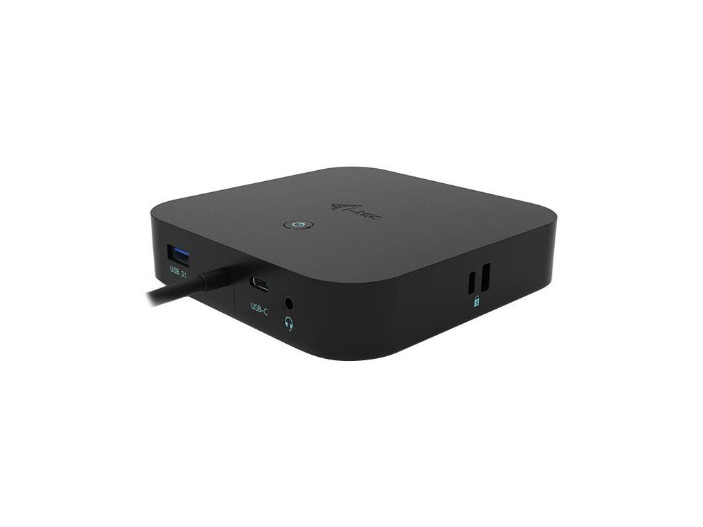 I-TEC USB-C Dual Display Dock 100 WDokovací stanice podporující připojení dvou 4K monitorů. K počítači či notebooku se připojuje pomocí USB-C portu s podporou Thunderbolt 3 a je tak schopná na podporovaných zařízeních přenášet i napájení až 100 W. Vysokorychlostní přístup k internetu lze realizovat skrze přítomný RJ-45 port. Pro připojení periférií jsou přítomny tři USB 3.0 porty, dva USB 2.0 porty a jeden USB-C port. Pro připojení sluchátek či mikrofonu pak slouží kombinovaný 3,5 mm konektor. Potěší také slot pro bezpečnostní zámek nebo přepínač pro zapnutí a vypnutí stanice.