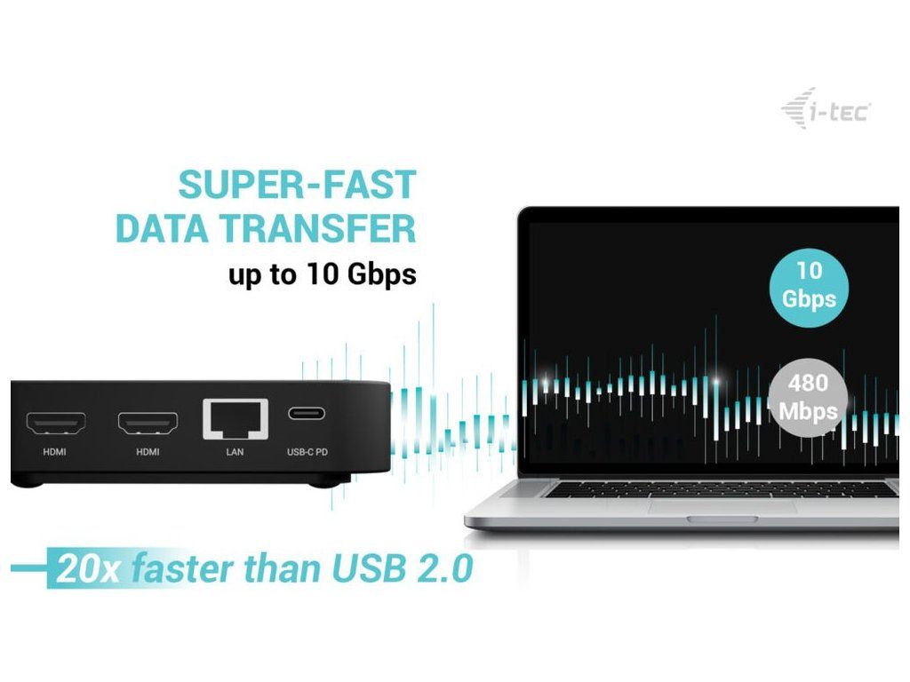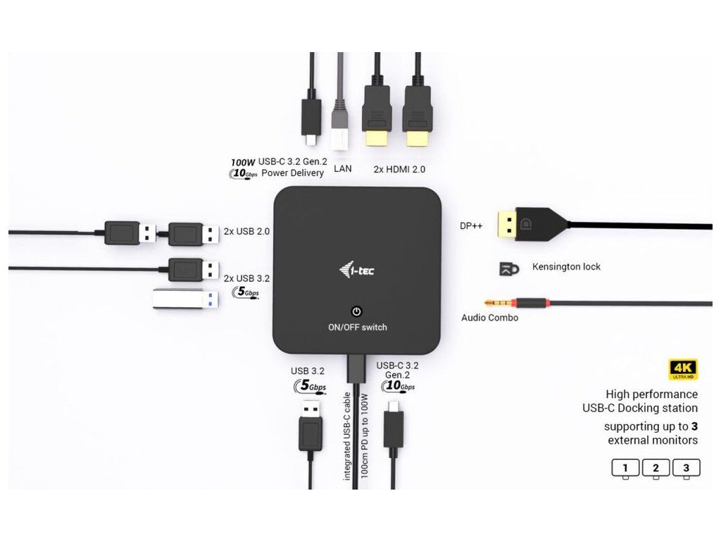 i-tec dokovací stanice USB-C DP Dual HDMI Docking Station, Power Delivery 100W + univerzální nabíječka 100W