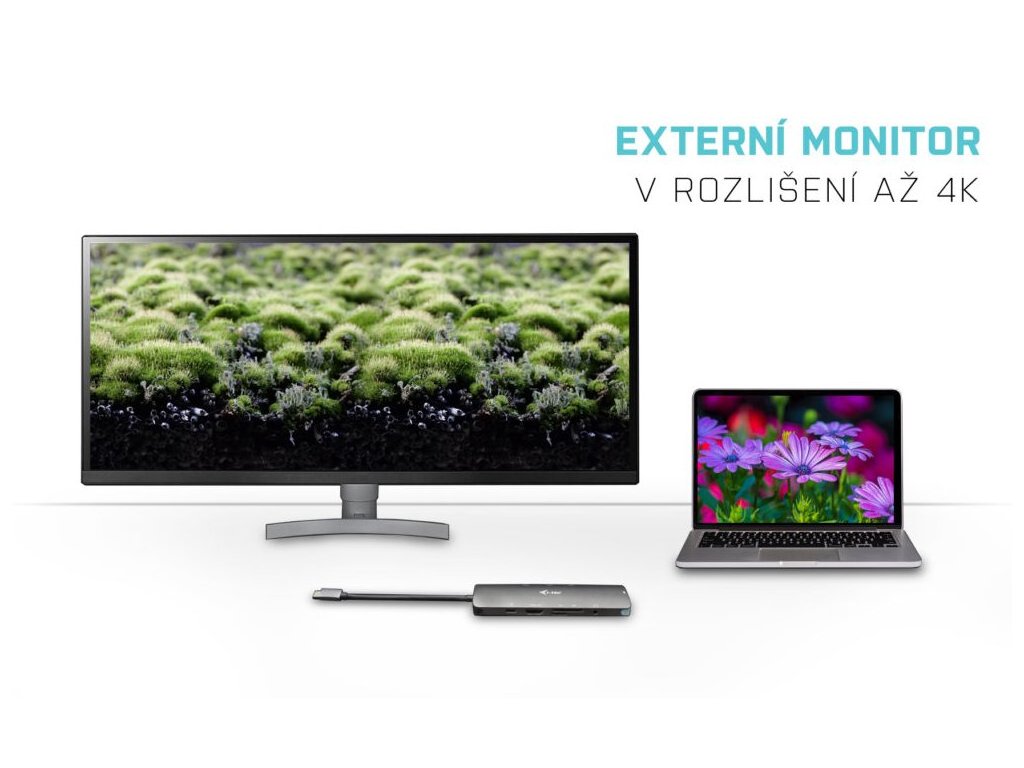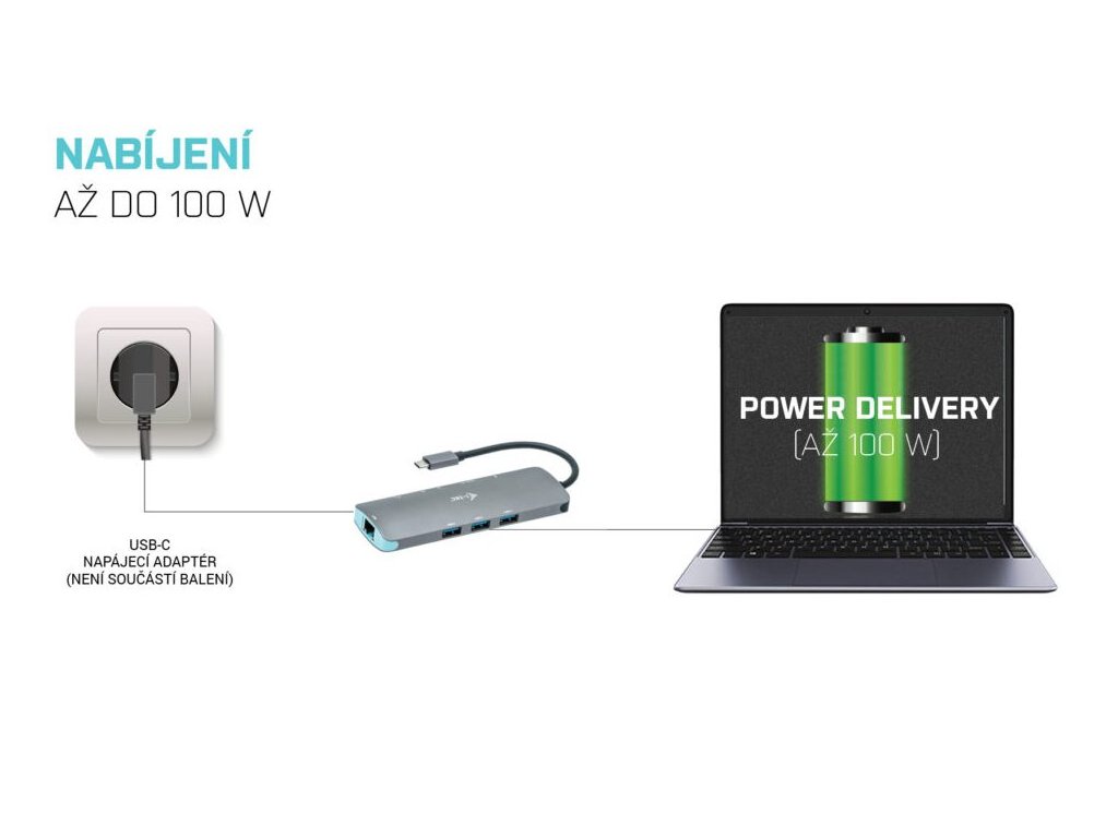 I-TEC USB-C Metal Nano Dock 100 WDokovací stanice nabízející velké množství praktických portů. Připojení k počítači je realizováno skrze USB-C kabel s podporou Thunderbolt 3. Stanice taktéž nabízí USB-C Power Delivery až 100 W, který je určen pro napájení připojeného notebooku či tabletu pomocí vašeho originálního síťového adaptéru. Rovněž podporuje nabíjení připojených USB mobilních zařízení. K dokovací stanici lze připojit monitor skrze rozhraní HDMI s maximálním rozlišením až 3840 × 2160 obrazových bodů. Vysokorychlostní přístup k internetu lze realizovat skrze přítomný RJ-45 port. Pro připojení periférií jsou přítomny tři USB 3.0 porty. Dále stanice disponuje čtečkou SD a microSD karet. Pro připojení sluchátek či mikrofonu pak slouží kombinovaný 3,5 mm konektor.