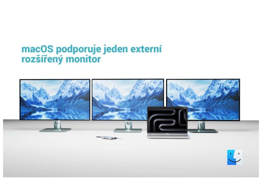 Systém macOS nepodporuje technologii Multi Stream Transport (MST), což znamená, že při připojení více monitorů budou zobrazovat stejný obraz (zrcadlení). Systémy iPadOS a Android nepodporují technologii přenosu obrazu na více obrazovek ani možnost rozšířené obrazovky – při připojení k externímu monitoru se zobrazí pouze zrcadlená obrazovka (neplatí pro zařízení Android s rozšířením DEX a Easy Projection). V případě připojení monitoru k výstupu VGA je maximální rozlišení všech monitorů max. 1080p/60 Hz.
