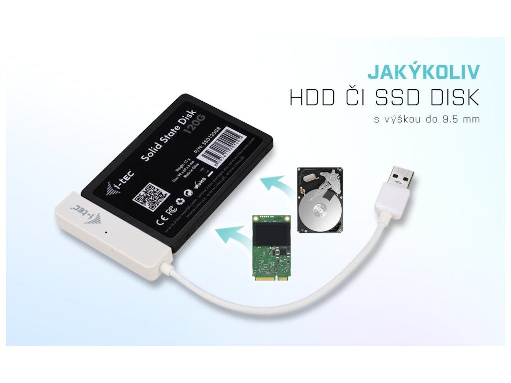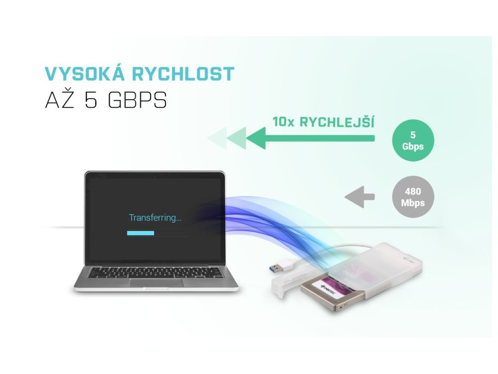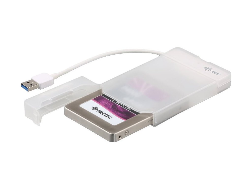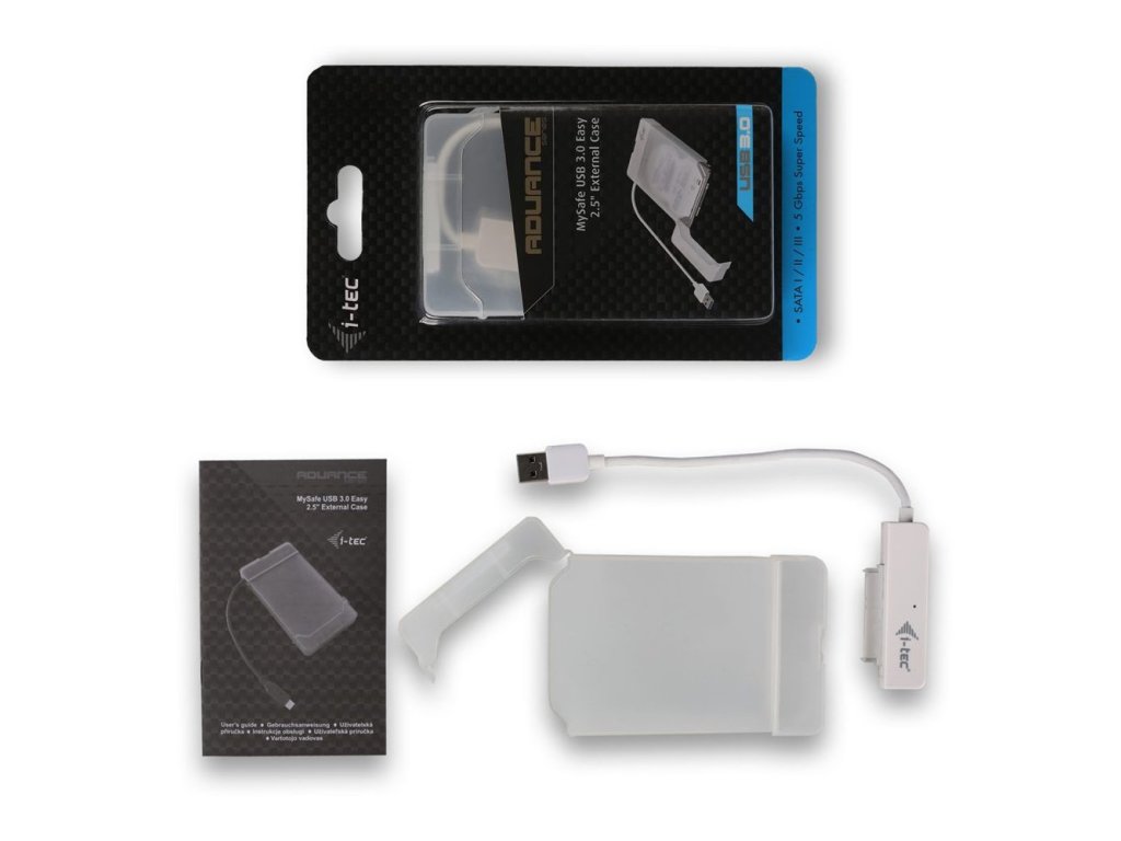 I-TEC MySafe Easy ADVANCE bílýMySafe Easy ADVANCE je externí rámeček pro připojení 2.5" SATA disků všech kapacit k vašemu PC, notebooku, TV či jinému multimediálnímu zařízení pomocí USB rozhraní, přes které je zároveň i napájen. Rámeček je rovněž vhodný k přesunu dat z poškozeného notebooku. Připojení přes USB 3.0 nabízí rychlý a snadný přenos dat (až 5 Gbps). Samozřejmostí je zpětná kompatibilita s USB 2.0. Obsluha je velice jednoduchá, disk pouze vložíte do rámečku a při prvním připojení k počítači se automaticky nainstalují ovladače. Pro rychlé připojení disku můžete použít pouze samostatný adaptér externího rámečku nebo můžete disk bezpečně přenášet v přiloženém plastovém boxu.