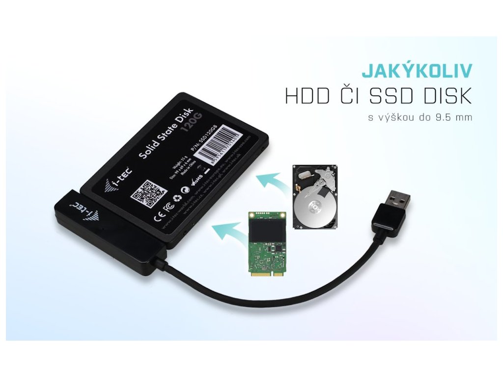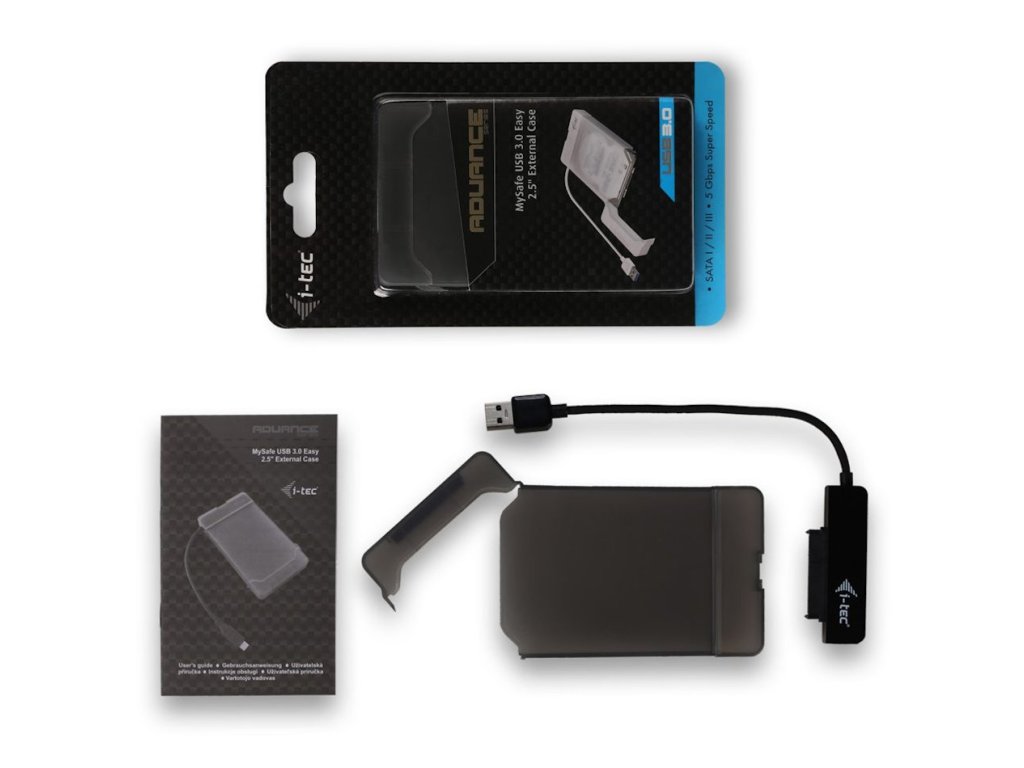 I-TEC MySafe Easy ADVANCE černýMySafe Easy ADVANCE je externí rámeček pro připojení 2,5" SATA disků všech kapacit k vašemu PC, notebooku, TV či jinému multimediálnímu zařízení pomocí USB rozhraní, přes které je zároveň i napájen. Rámeček je rovněž vhodný k přesunu dat z poškozeného notebooku. Připojení přes USB 3.0 nabízí rychlý a snadný přenos dat (až 5 Gbps). Samozřejmostí je zpětná kompatibilita s USB 2.0. Obsluha je velice jednoduchá, disk pouze vložíte do rámečku a při prvním připojení k počítači se automaticky nainstalují ovladače. Pro rychlé připojení disku můžete použít pouze samostatný adaptér externího rámečku nebo můžete disk bezpečně přenášet v přiloženém plastovém boxu.