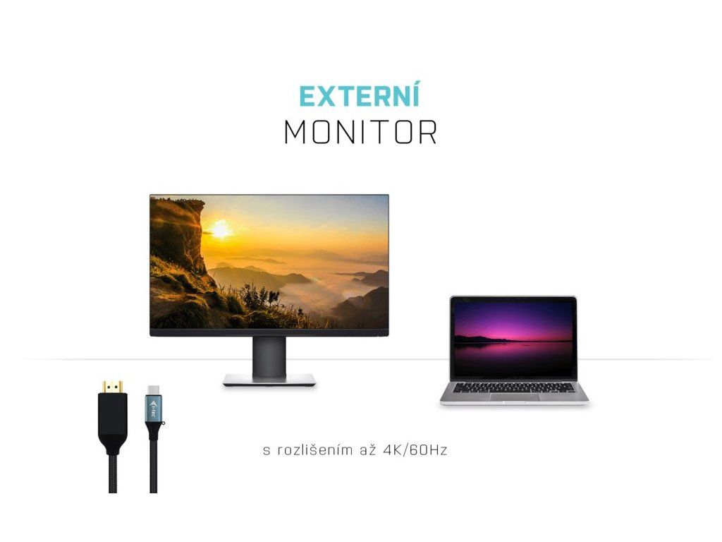 I-TEC kabel USB-C na HDMI 2 mRozšiřte svou pracovní plochu o externí HDMI monitor prostřednictvím USB-C nebo Thunderbolt 3 portu. Tento kabelový adaptér podporuje přenos 4K Ultra HD rozlišení až 3840 × 2160 pixelů, včetně audio signálu. Použití je velmi jednoduché, kabelový adaptér pouze připojíte do USB-C nebo Thunderbolt 3 portu počítače, pomocí HDMI konektoru jej propojíte se zobrazovacím zařízením a můžete začít okamžitě využívat. Instalace ovladačů je automatická ze systému.