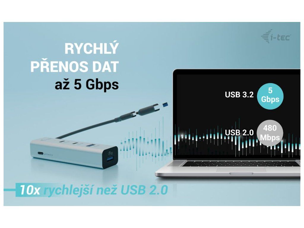 I-TEC USB-C/USB-A Metal HUB 85 WS tímto hubem získáte další dva USB-C a dva USB 3.0 porty. Připojte si externí klávesnici a myš, přenášejte data z USB flash disku rychlostí až 5 Gbps nebo nabíjejte svá mobilní zařízení výkonem až 85 W. Hub nevyžaduje instalaci ovladačů, pouze jej pomocí USB nebo USB-C konektoru připojíte a můžete jej ihned začít využívat. Vybaven je také USB-C portem pro připojení volitelného napájecího adaptéru s výkonem až 100 W (není součástí balení). Podporuje všechny běžné současné operační systémy (Windows, macOS, Linux, Android, Chrome OS, iPadOS).