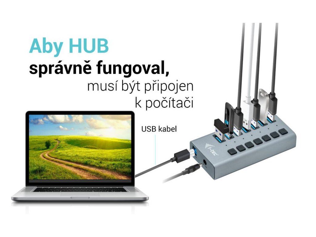 I-TEC 7× USB 3.0 + adaptér 36 WUSB hub nabízí rozšíření o sedm USB 3.0 portů s nabíjecím s výkonem až 10 W na jeden port. Hub má vestavěnou přepěťovou a nadproudovou ochranu pro případ zkratu na periferních zařízeních. Zařízení je kompatibilní s běžně používanými operačními systémy Windows, Mac OS X a Linux. Součástí balení je napájecí adaptér o výkonu 36 W a USB-B na USB kabel o délce 1 m.
