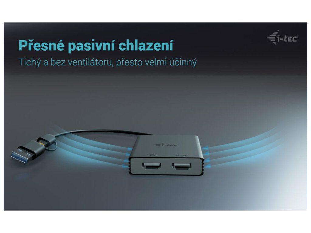 I-TEC USB-A/USB-C Dual 4K HDMIVideo adaptér, který umožňuje rozšíření vaší pracovní plochy o dva externí HDMI monitory. Připojení lze jednoduše realizovat skrze konektor USB-A či USB-C s podporou USB 4.0 a Thunderbolt 3/4. Adaptér podporuje přenos rozlišení 4K při 60 Hz včetně zvukového signálu.