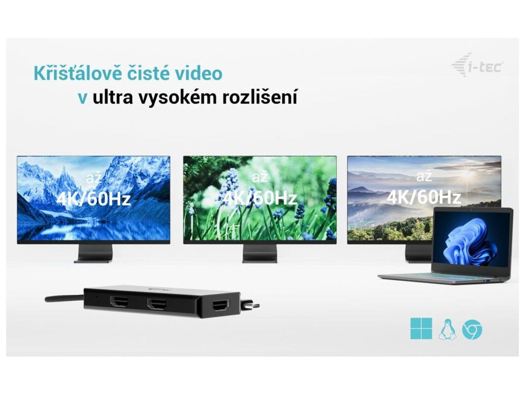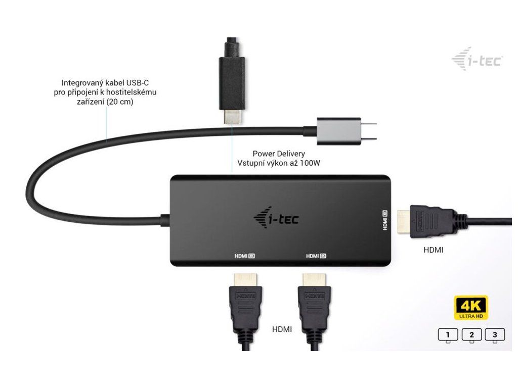 i-tec USB-C Triple 4K HDMI video adaptér, Power Delivery 100W