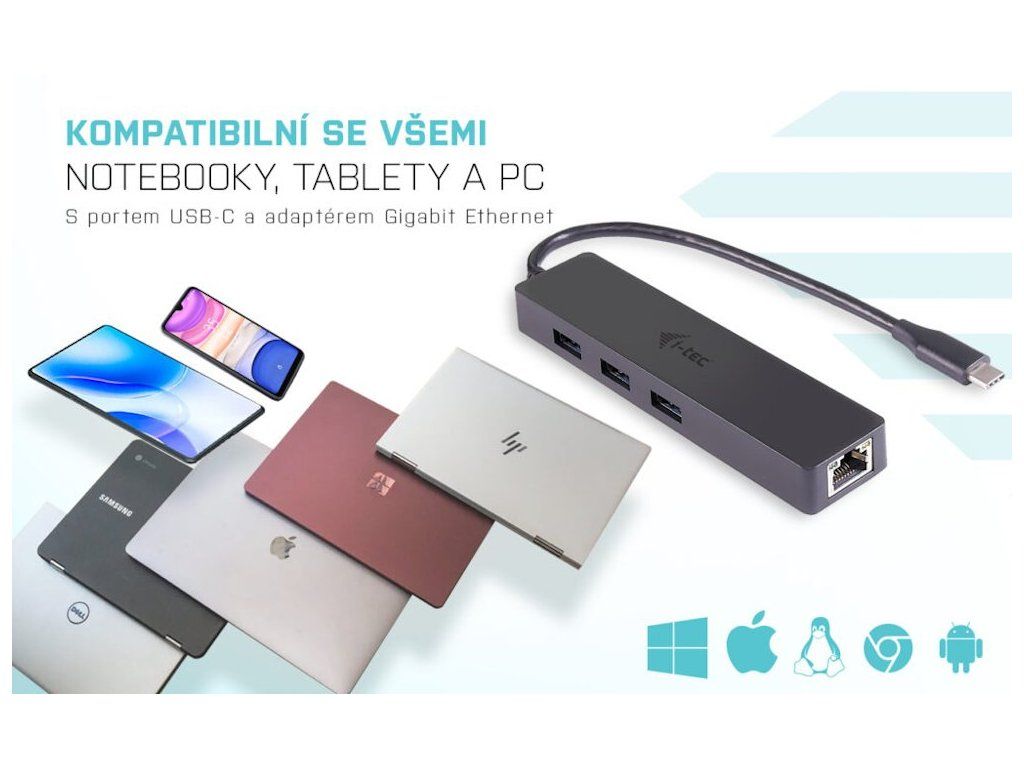 i-tec USB Slim HUB/ 3 porty s Gigabyte Ethernet/ na USB 3.1 Type C/ kompatibilní s Thunderbolt 3/ černý