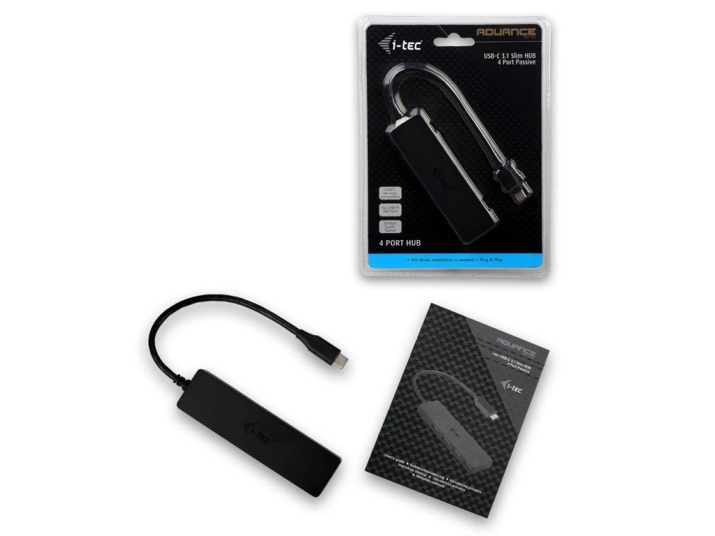i-tec USB Slim HUB/ 4 porty/ USB 3.0 port pro USB-A zařízení na USB 3.1 Type C/ černý