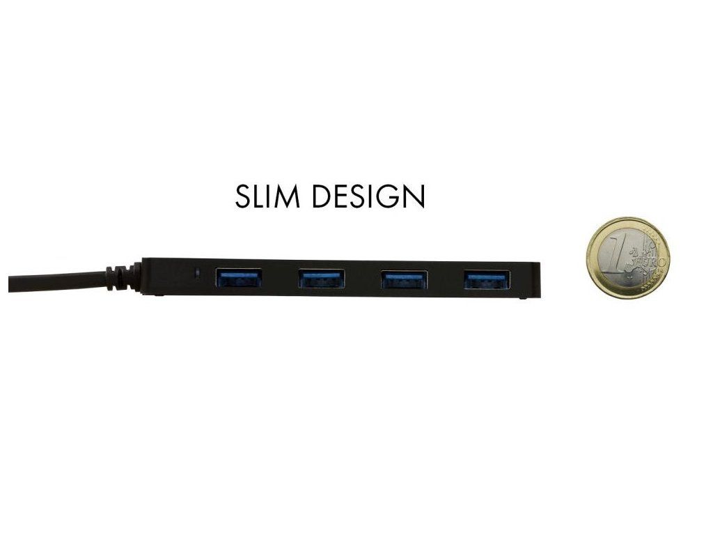 I-TEC Slim USB-C 3.1 na 4× USB 3.0USB hub pro notebooky, tablety a smartphony s konektorem USB-C nebo Thunderbolt 3 nabízí rozšíření o čtyři porty USB 3.0. Hub má vestavěnou přepěťovou ochranu pro případ zkratu na periferních zařízeních. Zařízení je kompatibilní s běžně používanými operačními systémy Windows, Mac OS, Android a Chrome.