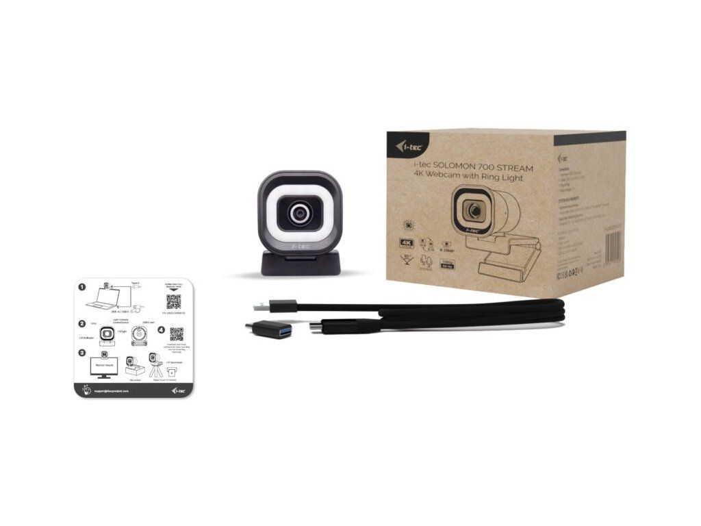 i-tec webkamera SOLOMON 700 STREAM/ Ultra HD 4K rozlišení/ PDAF/ LED světlo/ dva mikrofony/ USB-C